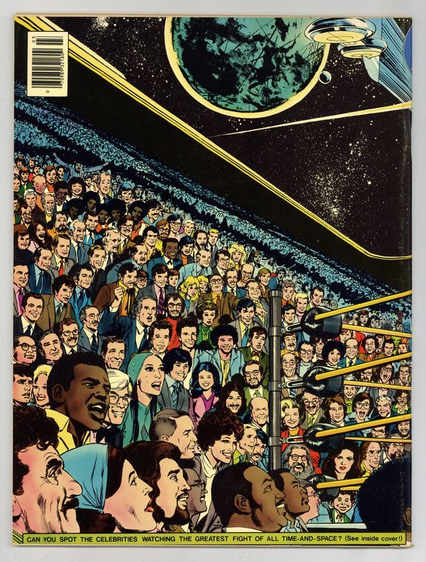 Tags: Treasury Sized Editions (part C56), Superman$215.00DC EDITION. All-New Collectors' Edition: Superman vs. Muhammad Ali. Cover art by Neal Adams. Backed by an armada of 100 powerful warships orbiting the planet, Rat'Lar demands that Earths greatest champion battle the mightiest Scrubb warrior. Ali and Superman each argue that they should be chosen as champ, with Rat'Lar insisting that the dueling duo fight one another to determine Earths true champion. To make things fair for Earthling Ali, the match takes place on Rat'Lars home planet, Bodace, which has a red sun. Treasury-sized. Size is 10 x 13-1/2" (about the size of a Life magazine). Cover price $2.50. Cover price $2.50.