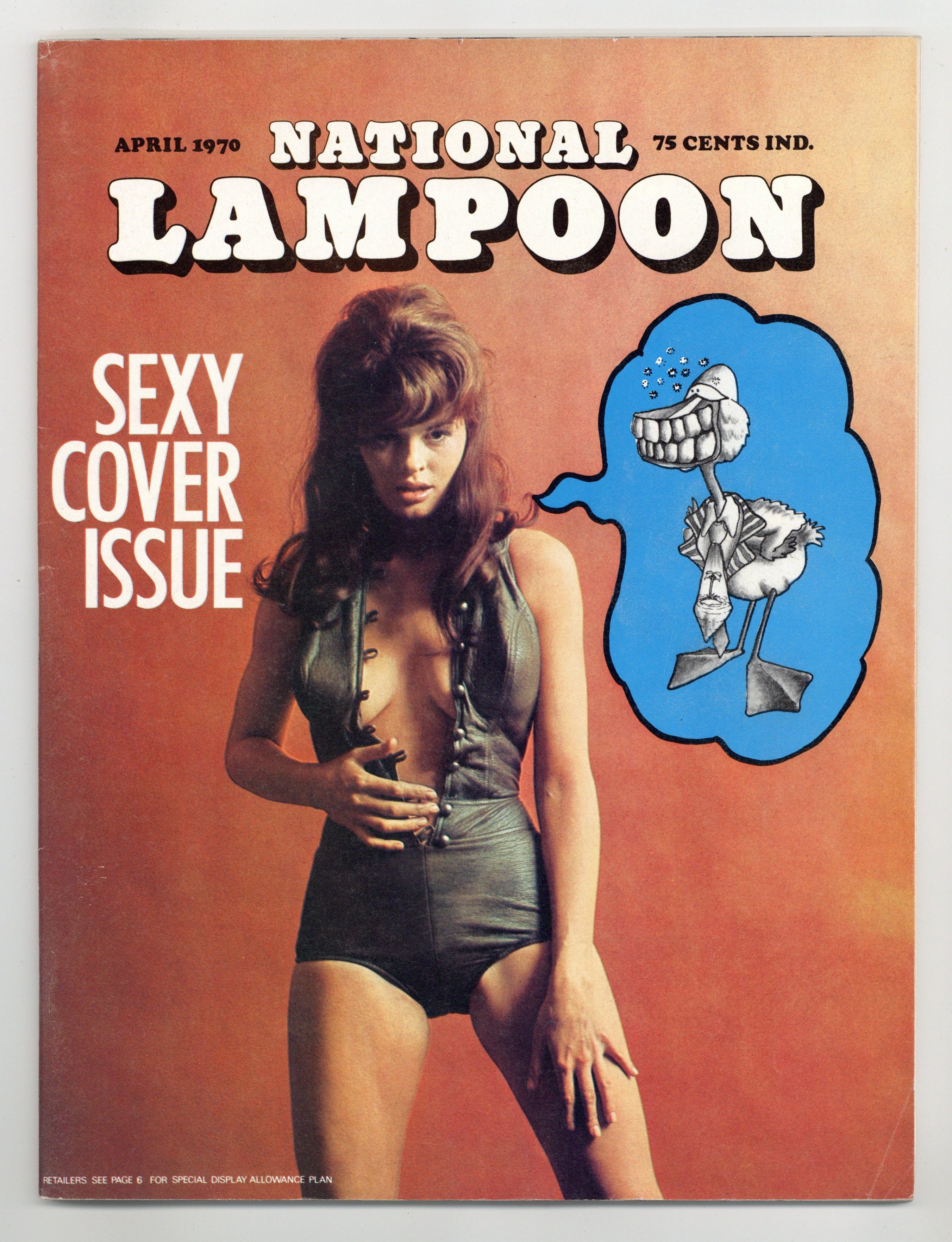 Published Apr 1970 by National Lampoon.$144.00April 1970. Sex. The premiere issue of the influential comedy magazine founded by three alumni of the Harvard Lampoon. This issue features a spoof of Playboy magazine, as well as Sex Through the Ages, illustrated by Arnold Roth. Stories and art by Doug Kenney, Michael O'Donoghue, David McClelland, Rick Meyerowitz, Peter Bramley and Henry Beard. Plus letters from the editors, cartoons, and more jokes for emotionally arrested adults. Mature readers. Cover price $0.75.