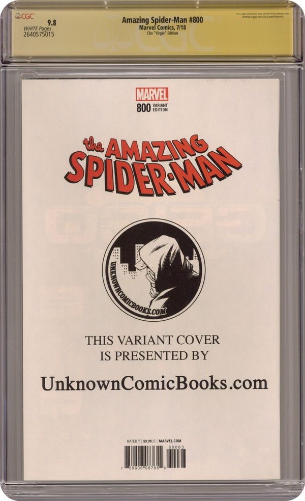 Unknown Comics exclusive virgin cover by Frank Cho. Go Down Swinging: Part 4 of 4 - Written by Dan Slott. Art by Nick Bradshaw, Humberto Ramos, Guiseppe Camuconli, Stuart Immonen, Marcos Martin, Victor Olazaba, Cam Smith and Wade Von Grawbadger. Dan Slott and Stuart Immomen are joined by many of the artists who made the last 10 years of Spider-Man so Amazing! The biggest Peter Parker/Norman Osborn story of all time unfolds over one 80-page story, a scope unmatched in comics! Who lives?! Who dies?! And what scars will Spider-Man bear from here on out?! 92 pages,full color. Rated T