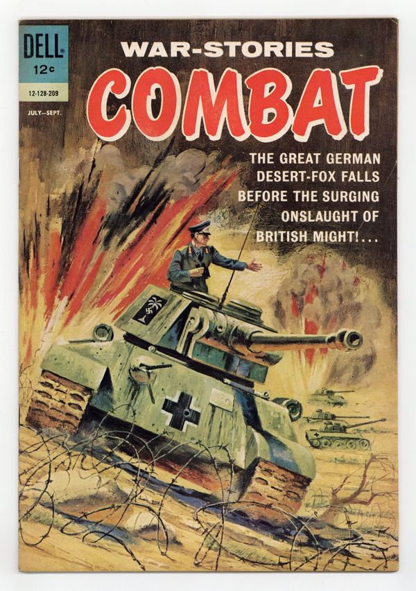 Stories and art by Sam Glanzman and others. Unlike other war comics of the era, Dell's Combat focused on the events of historic battles, rather than war fiction, with art by WWII veteran and comics legend Sam Glanzman. Capt. Percy leads a daring attack on Rommel's forces in the North African desert. Napoleon's siege of Russia is his greatest military blunder, as the Russians allow the harsh winter to take its toll on Napoleon's forces. Behind Rommels Lines; George Rogers Clark; Retreat From Moscow. 32 pages, Full Color. Cover price $0.12.