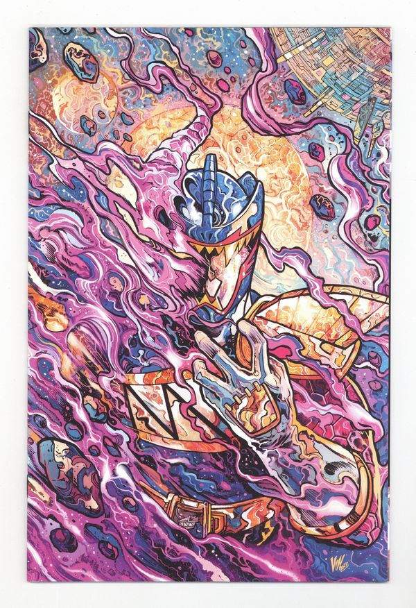Published Jan 2022 by Boom Studios.$6.00Limited 1 for 25 Retailer Incentive Variant Cover. Written by Nicole Andelfinger. Art by Simone Ragazzoni. Cover by Jung-Geun Yoon. Discover the truth behind the Phantom Ranger, the Morphin Masters, Power Rangers, and the Morphin Grid itself in the series that will unlock the secrets of the Power Rangers Universe! In the ancient past, six teens scramble inside the Masterforge to save a mysterious figure they rescue from the Morphin Grid. But in doing so, they strand themselves from their parents, the Morphin Masters, who ascend into the Grid itself to protect it from Dark Specter. Can they protect Earth and the Grid itself from the impending forces headed their way? That question will have to wait, because first they must defend themselves against… a T-Rex attack! 24 pages, full color. Cover price $4.99.