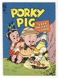 Indicia title is "PORKY PIG in EVER-NEVER LAND, No. 182." Cover art by Tom McKimson. Ever-Never Land, art by Roger Armstrong; Porky and Petunia join Prof. Y. E. Oldbones on an expedition to Ever-Never Land to find the Flugleberry bush, whose berries are said to give great wisdom to whoever eats them. Porky Pig's "Gorilla Hunt, art by Tom McKimson; Bugs and Cicero dress up in a gorilla suit to advertise a new movie; Porky hears a report of an escaped gorilla on the radio, not knowing it's from a distant city, and sends the town into a panic after seeing the two in the gorilla suit walking the streets. 36 pages, full color. Cover price $0.10.