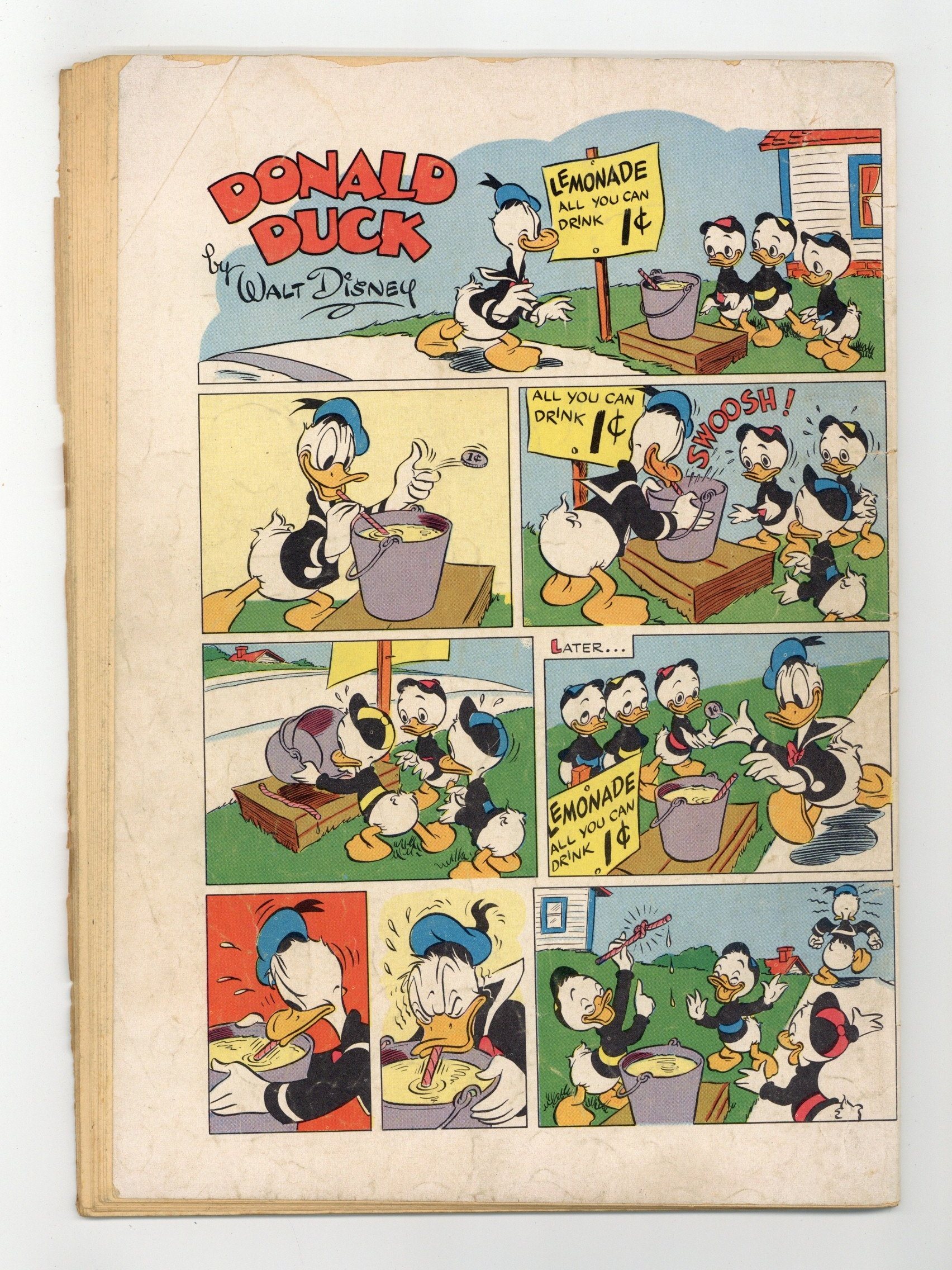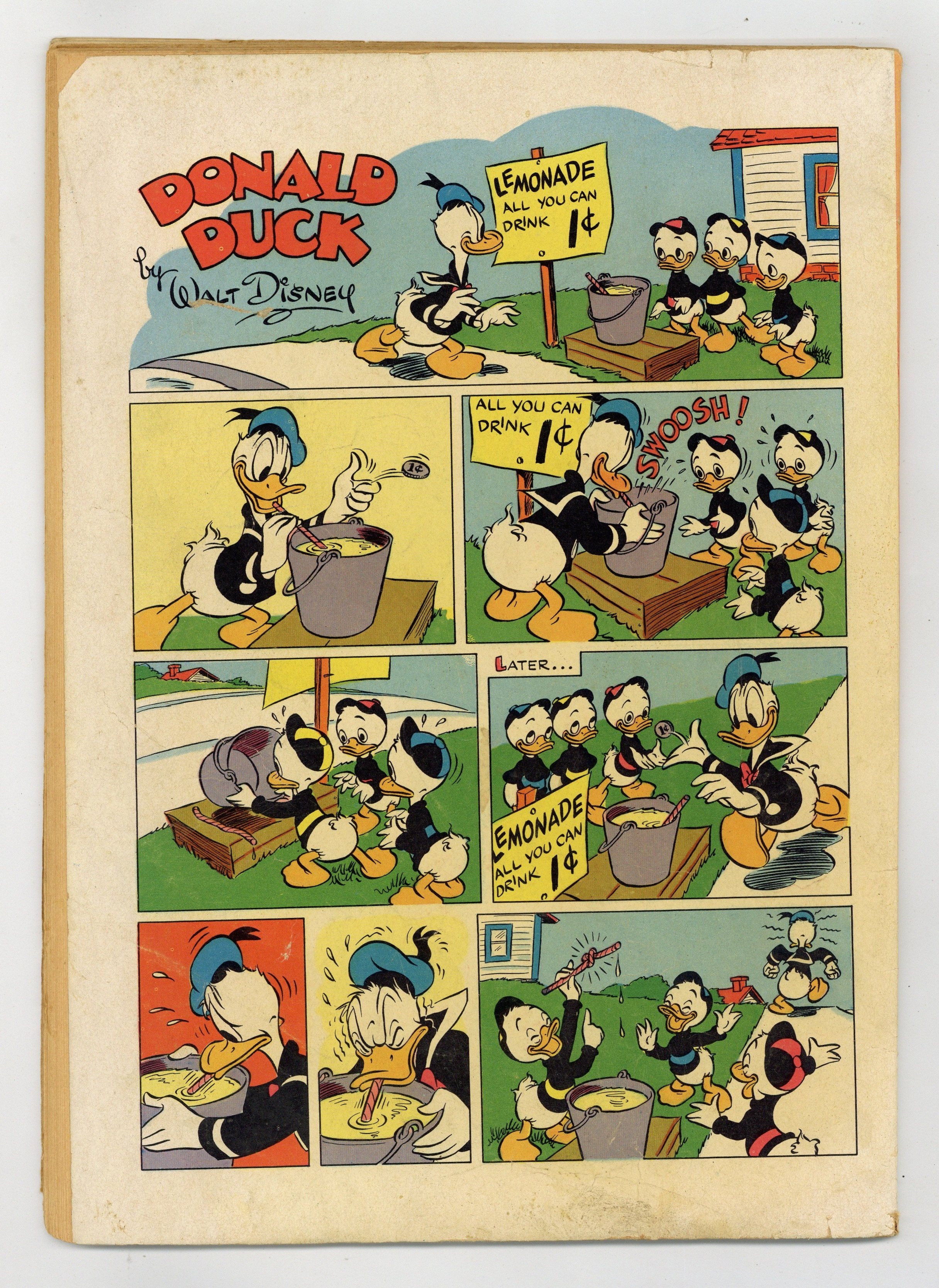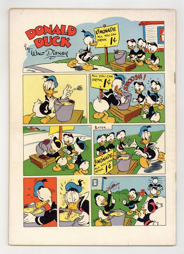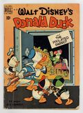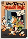 $65.00Indicia title is "Walt Disney's DONALD DUCK and the PIXILATED PARROT, No. 282." Cover art by Carl Barks. Donald Duck and "The Pixilated Parrot, script and art by Carl Barks; Donald gives Uncle Scrooge a parrot that only counts, instead of talking, and Scrooge has the parrot memorize the combination to his safe; which Scrooge has been forgetting. Pig in a Poke, pencils by Riley Thompson; Huey, Dewey, and Louis go to a farm to get an animal to show at the county fair. Fresh Milk and Eggs, art by Paul Murry; Donald is a milkman whose customers complain about not receiving fresh milk and eggs. 52 pages, full color. Cover price $0.10.
