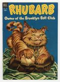 $15.50Indicia title is "RHUBARB, OWNER OF THE BROOKLYN BALL CLUB, No. 423." Painted cover art. Rhubarb, art by Don Gunn; A millionaire who owns the Brooklyn Loons baseball team befriends a tough yellow tomcat that he names "Rhubarb" after the slang term for a baseball argument; Three years later, the man dies and leaves the bulk of his fortune and the ball club to Rhubarb; The Loons' press agent Eric Yeager is named legal guardian of the cat and a running sub-plot is his attempts to marry Polly Sickles, who is allergic to the cat; At the climax, Rhubarb, who has been the good luck charm for the baseball team during a winning streak, is kidnapped by some gangsters who plan on Brooklyn losing the championship game without their lucky mascot. 36 pages, full color. Cover price $0.10.