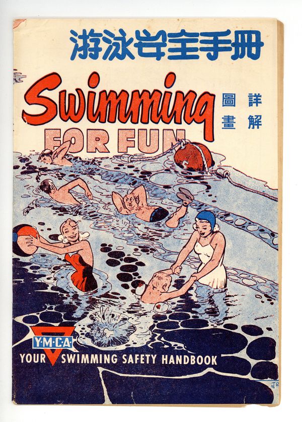 $43.00Chinese Edition - Swimming for Fun, Your Swimming Safety Handbook (1953) Produced under the direction of John R. Burkhart in cooperation with the National Physical Education Committee of the YMCA. A promotional comic book covering swimming tips, obeying the warning signs, getting into the swim, be a smart swimmer, safety and small boats, racing is a great sport, helping others, artificial respiration, and more. 16 newsprint pages, monochrome color, standard comic book format, text is in English with Chinese captions. 7" x 10", 16 pages, B&W