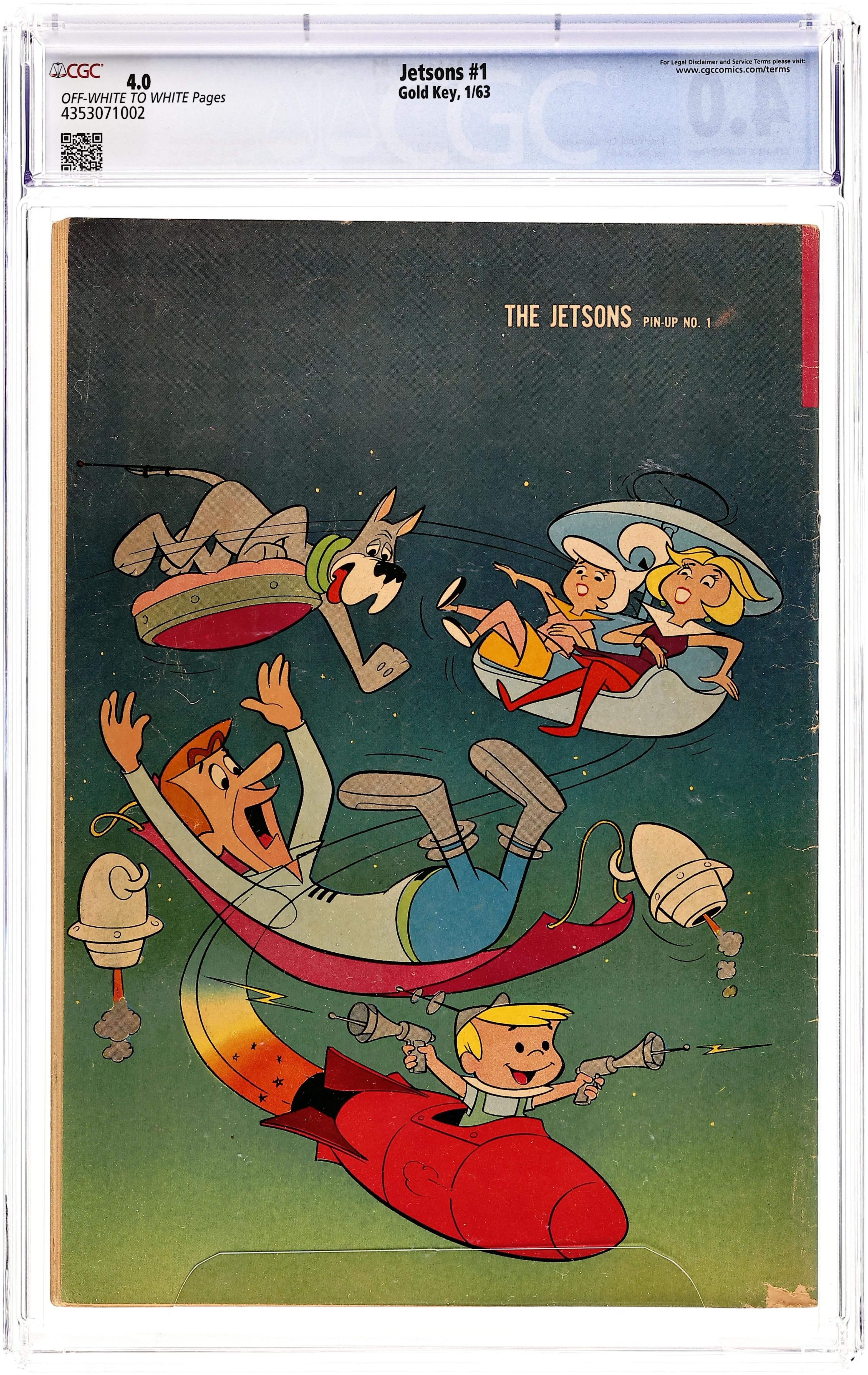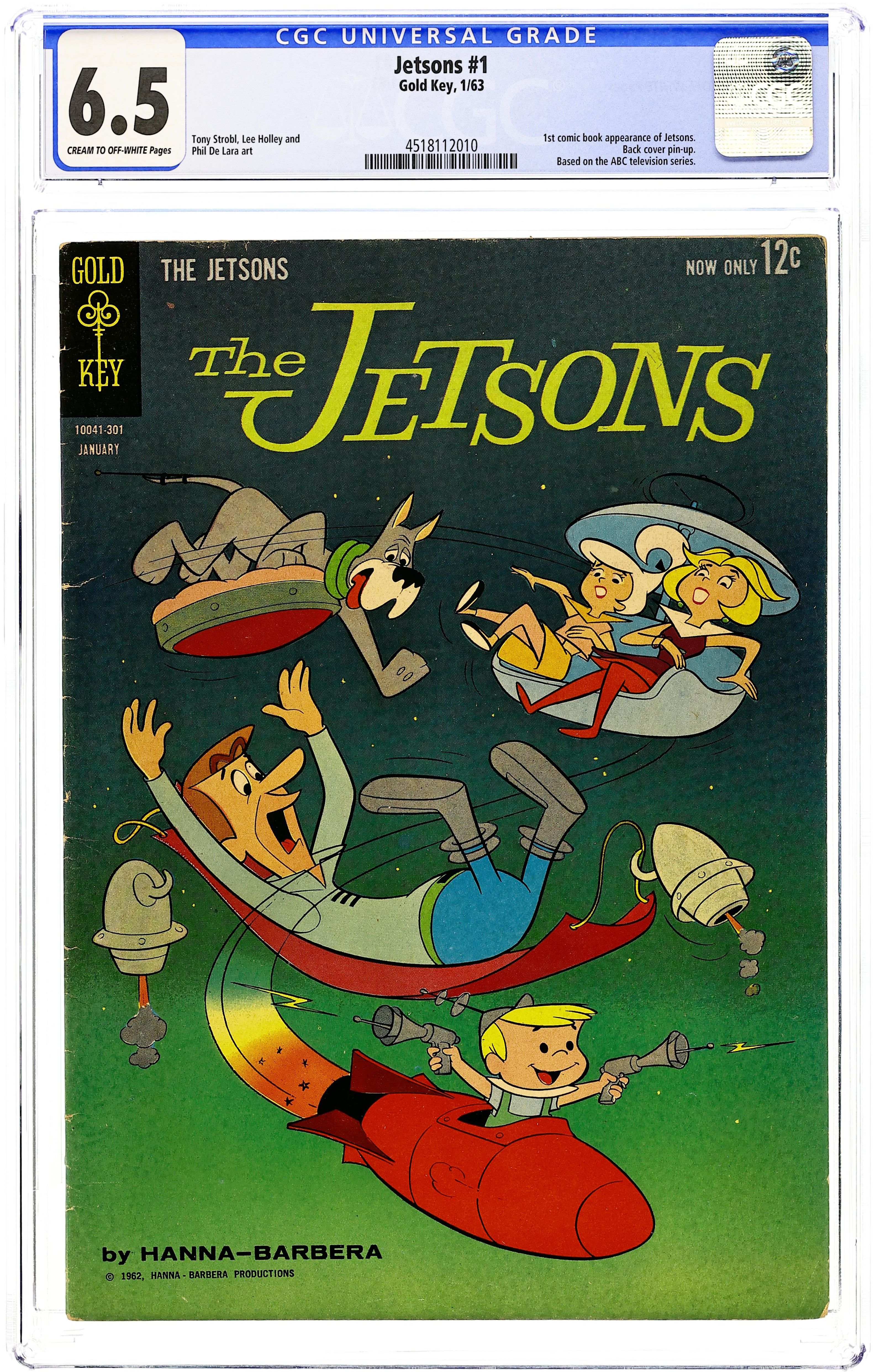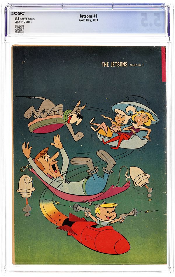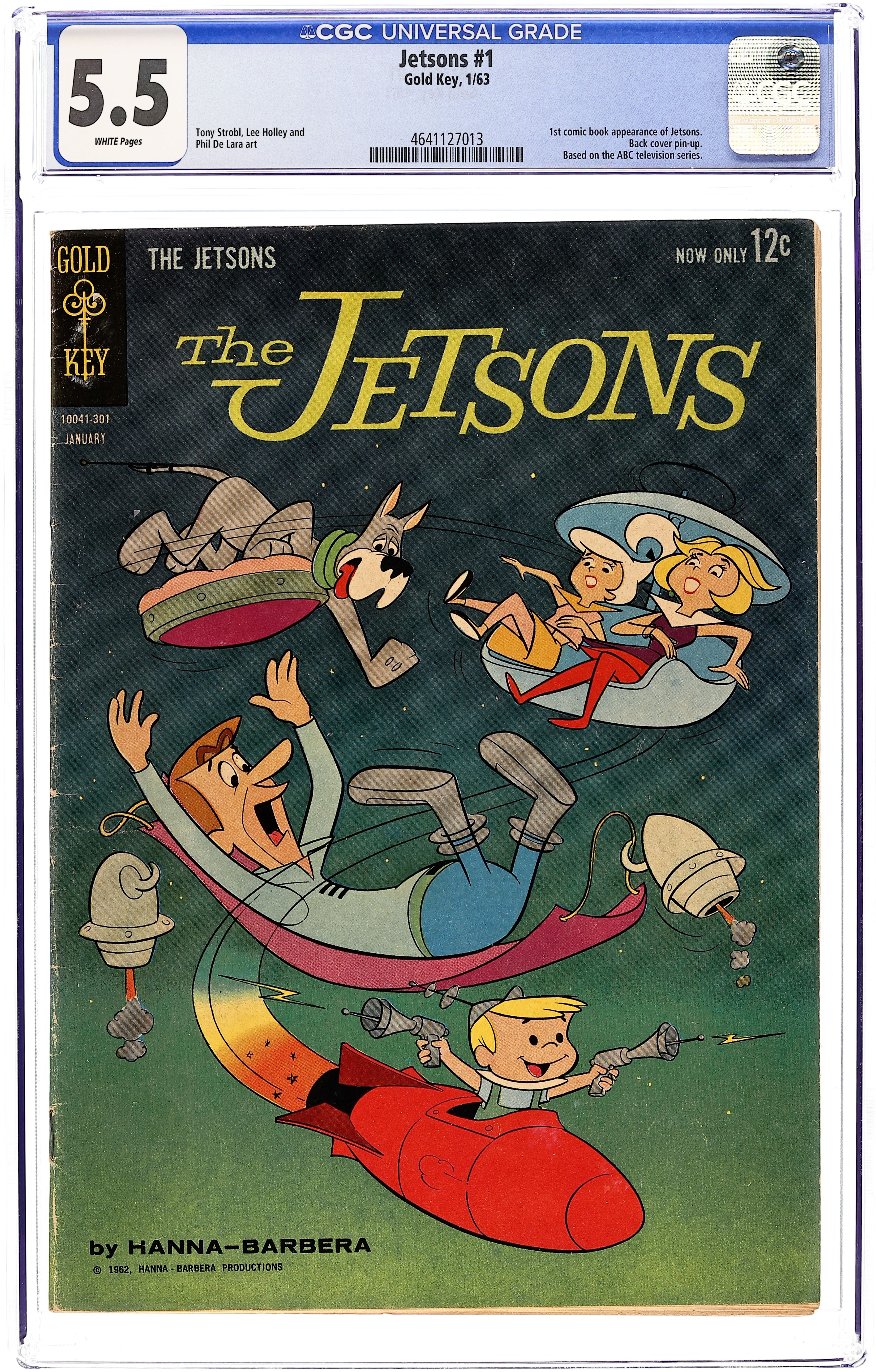 Number/month on cover: 10041-301, January. Comic book version of the popular Hanna Barbera cartoon show. Issue features the Jetsons in an untitled story, "A Boy's Best Dog is his Friend," and "Dear Old Dad." Issue also has Lippy Lion and Hardy Har Har in "The Rainmakers," one-page gag strips, and a one-page text feature "Jet Propulsion." Back cover is pinup of front cover illustration. Story and art credits: unknown. Cover price $0.12.