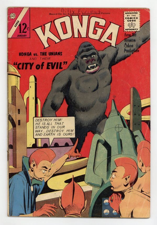 Tags: Konga by Steve Ditko (part 16)Published Jan 1964 by Charlton Comics Group.$4.00- Cover oxidation. Staple rust with migration. Water damage.