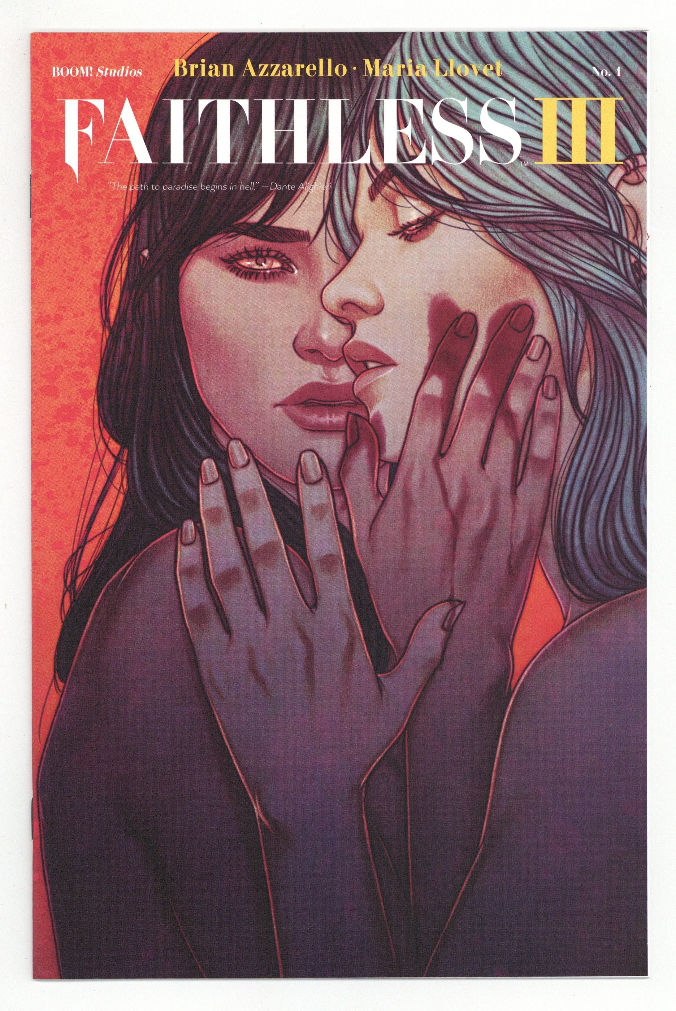 Published Feb 2022 by Boom Studios.$25.00Limited 1 for 25 Retailer Incentive Variant Cover. Written by Brian Azzarello. Art by Maria Llovet. Cover by Jenny Frison. The final act of Azzarello and Llovet's erotic thriller masterpiece! Nine months after her mysterious disappearance, Faith suddenly drops back onto the map. While the art world debates whether her disappearance was a piece of performance art or all just a publicity stunt, Faith retreats to Louis's studio to recover from her journey into the unknown. But Ginny begins to realize that something is very much amiss with Faith. Where was she for nine months? And why does Faith suddenly seem so obsessed with Ginny's son Jacob? The acclaimed team of New York Times bestselling writer Brian Azzarello (Batman: Damned) and Maria Llovet (Luna) reunite for the third and final act of their erotic thriller masterpiece! 24 pages, full color. Mature Readers Cover price $3.99.