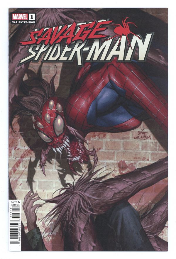 Limited 1 for 100 Retailer Incentive Variant Cover. Written by Joe Kelly. Art by Gerardo Sandoval. Cover by Inhyuk Lee. SPIDER-MAN LIKE YOU'VE NEVER SEEN HIM BEFORE! Peter Parker finds himself at the middle of the biggest, most wide-ranging adventure he's ever had and out of the gate it has turned him into a SAVAGE BEAST! Forget everything you know about Spider-Man. All rules and regulations are out the door and Peter Parker may never be the same! 28 pages, full color. Rated T+ Cover price $3.99.