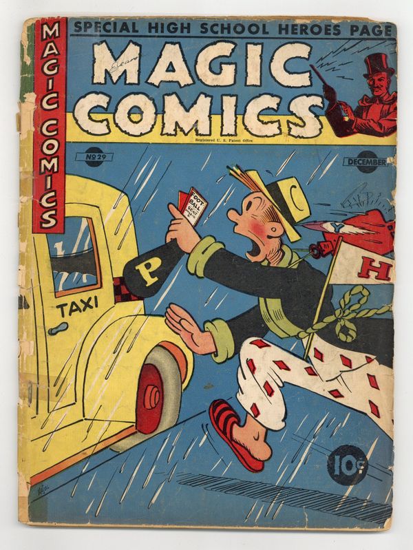 Cover by Joe Musial. Edited by Margery McKay (sometimes credited as G. Whiz). Stories and art by Lee Falk, Phil Davis, Feg Murray, Clayton Knight, H. H. Knerr, Fran Striker, Charles Flanders, Floyd Torbert, Robert Storm, Mel Graff, Thornton W. Burgess, Carl Anderson, Edwina Dumm, Chic Young, Bob Dunn, Frank Miller, Joe Musial, Billy DeBeck, Jimmy Thompson, Eugene L. Pollack, Tom Sims, and Bela Zaboly. Lee Falk's adventurer Mandrake the Magician gets top billing in this anthology series featuring reprints of King Features Syndicate comic strips. Fresh from defeating the Octopus spy ring, Mandrake rescues a scientist whose invention could change warfare forever. Mandrake the Magician; Jan and Aloysius; Seein' Stars; The Romance of Flying; Bunky; Dollar-A-Dither; The Lone Ranger; Secret Agent X-9; Little Nature Stories; Henry; Little Acorns; High Spots; Popeye; Barney Baxter; Blondie; Indian Lore; Tippie and Cap Stubbs; Dinglehoofer. 64 pages, Full Color. Cover price $0.10.