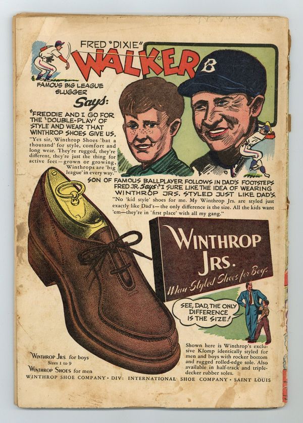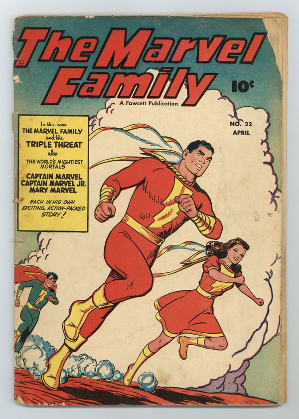 Cover inks by Pete Costanza. The Triple Threat, script by Otto Binder, art by Pete Costanza; the Marvel family faces Mr. Who [Czar Gargan]. The Daring Little Man On the Flying Trapeze starring Peewee Pete. The Mystery of the Leprechauns, art by Jack Binder; Mary heads out for the city orphanage to help open the shoe drive that will secure many shoes for the needy children inside; Unfortunately, when the Mayor claims to have seen leprechauns, the citizens of the city scoff at him and want him to resign. The Return of the Suicide starring Captain Marvel, Jr., art by Kurt Schaffenberger. Fine State of Affairs half-page starring Judge Smudge, script and art by Howard Boughner. On a Merry-Go-Round starring Captain Kid, script and art by Al Liederman. The Red Fox Treasure text story by Rod Reed [as Clement Good]. The Radioactive Man, script by Otto Binder, art by Pete Costanza; Captain Marvel faces The Radioactive Man. 52 Pages, Full Color. Cover price $0.10.