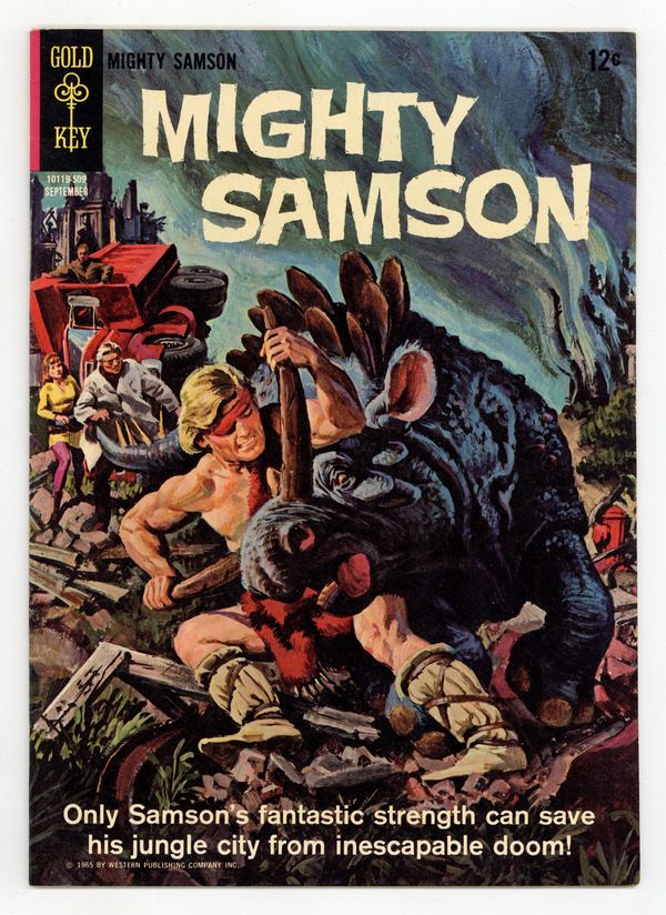 $22.50No ads in book. Painted cover. Back cover has pinup of front cover painting. Entire issue from cover to cover is comic stories and one page strips. Mighty Samson in "Peril From The Past" and "The Desperate Mission" in which Mighty Samson tries to defeat the threat of a poisonous cloud. Issue also features "Keys of Knowledge," one-page education feature on inside covers. No art/story credits given. Cover price $0.12.