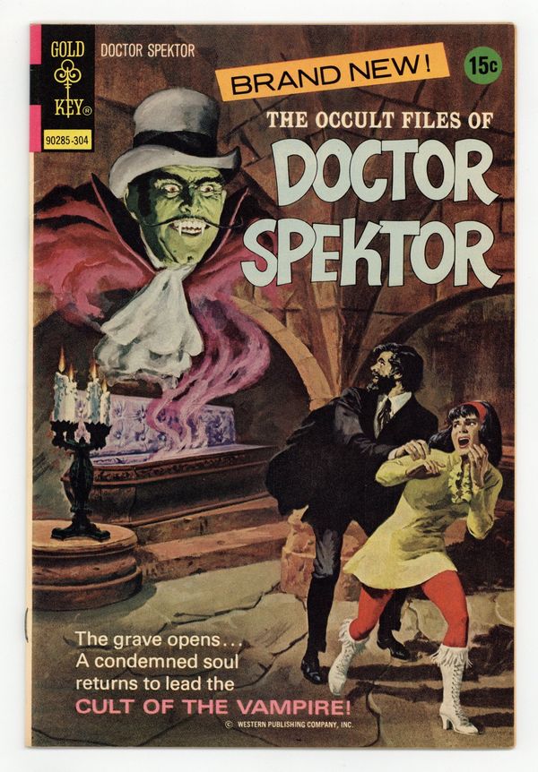 First issue of the adventures of Dr. Adam Spektor and his secretary Lakota Rainflower in "Cult of the Vampire." Baron Tibor appearance. Jesse Santos art. Painted front cover. Number on cover 90285-304; no month listed. Cover price $0.15.