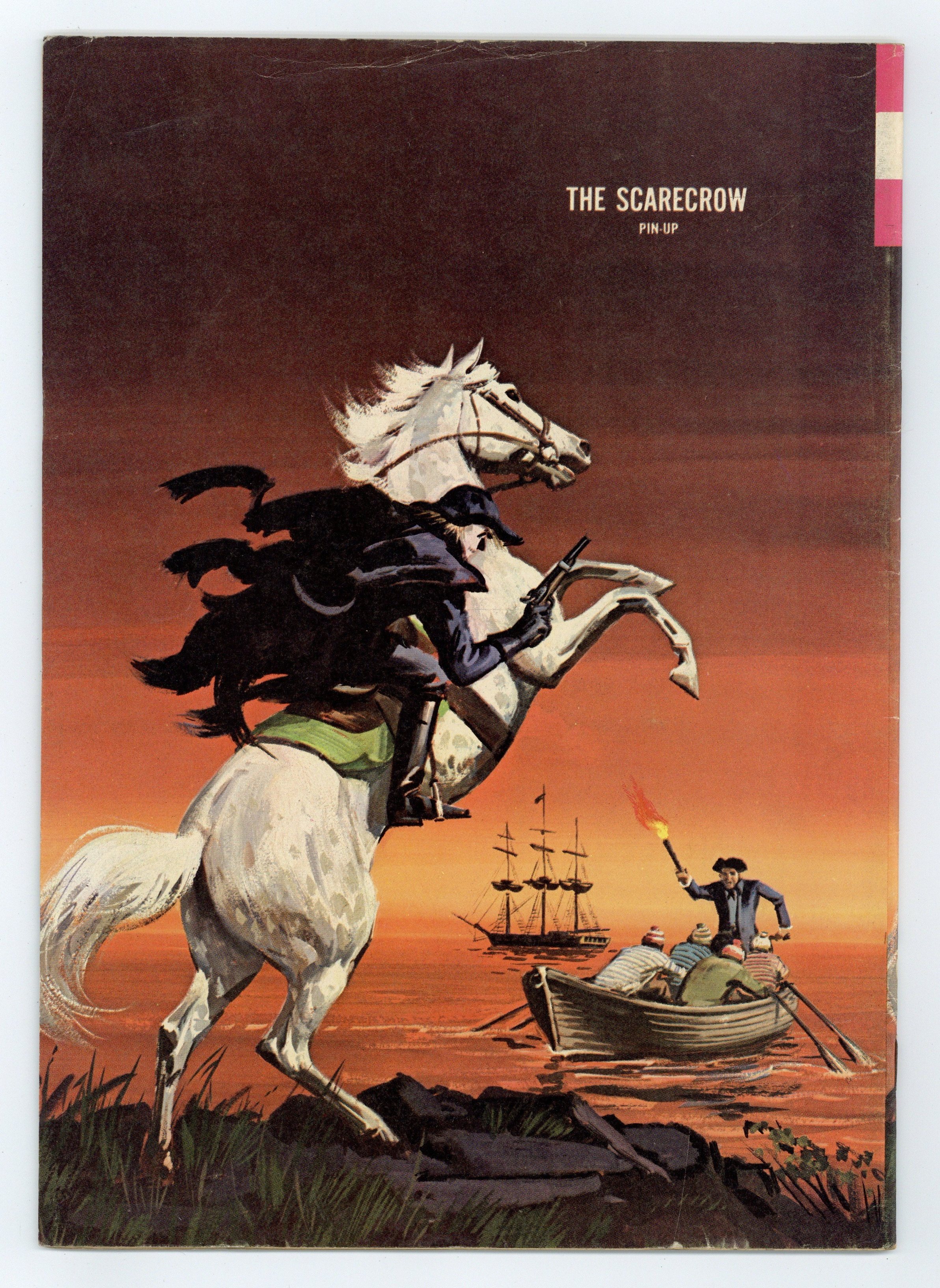 $115.00The Scarecrow in "Beware the False Demon Ghost" with Dan Spiegle art. Painted front cover with pin-up on back cover. Photos from TV episodes on inside covers. # on cover 10112-507. No month listed. #2 1965 12c Cover price $0.12.