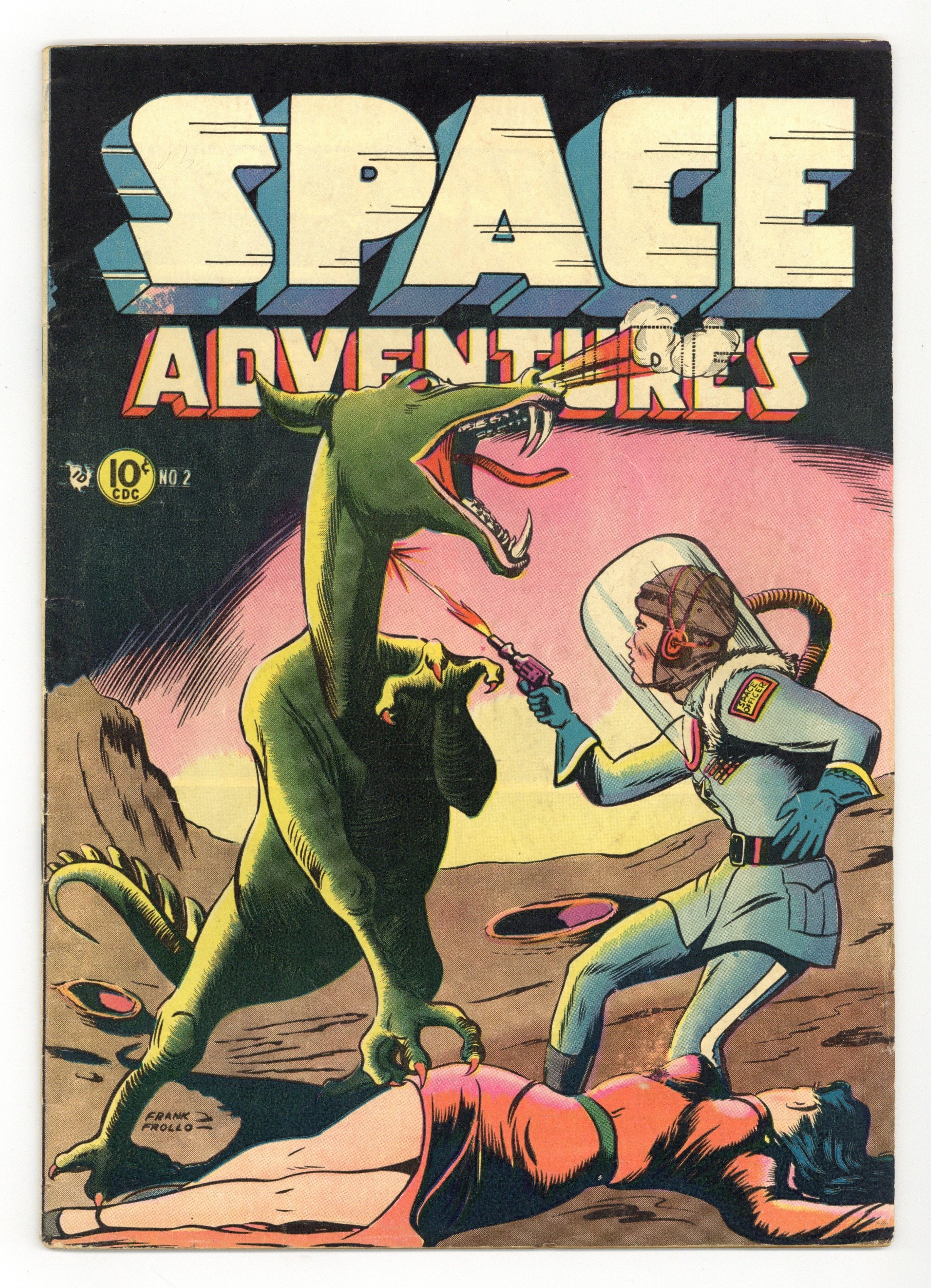 Cover art by Frank Frollo. "Talk About Speed" one-page story, art by Frank Frollo. "Operation Pluto," art by Art Cappello; Queen Anyana is leader of the country of Delonia on the planet Pluto; Two space traders, Wix and Gurkus, have taken over Delonia; The Space Rangers, including Rex Clive and Speed Lansing are sent with their scout crafts in the cargo hold of a massive ship called the Solario; It is threatened by Wix, the self-proclaimed ruler of Pluto. "Trouble on Phobos," art by Dick Giordano; Captain Norgo is attempting to smuggle a powerful alcohol called Fluvia to Mercury; Fluvia is illegal on the planet of destination; Space Rangers Barry and Jones investigate his ship. "The Graveyard of the Sky," art by Frank Frollo; Tyranno, with his assistant Fodor, operates a plan to take over the governorship of the planetary system from one of Jupiter's moons, Ganymede; To do so, he uses radar to trick the Staritania to Jupiter. "Down to Earth" text story. "Revolt of the Robots," art by John Belfi; Newlyweds Jak and Maida Barv go to Decima, the tenth moon of Jupiter, to run an iron mine; They are alone except for the robot labor force; A robot tries to kidnap Maida. "The Smugglers of Callisto," pencils by Frank Frollo, inks by John Belfi; The Space Rangers run across a scheme by Soq to steal methane shipments from Jupiter. "The Land of Perpetual Light" half-page story, art by Frank Frollo. 36 pgs., full color. Cover price $0.10.