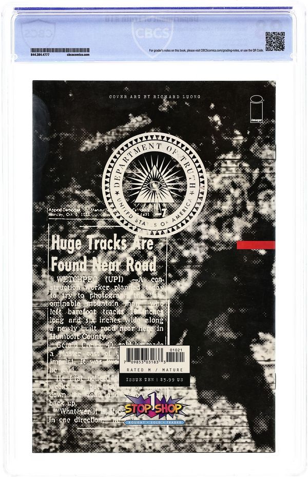One Stop Shop Exclusive Cover by Richard Luong (Homage to House of Secrets #92). Written by James Tynion IV. Art by Martin Simmonds. Some fictions manifest in reality as dangerous, half-formed things. The Department of Truth relies on hunters to track down and contain these wild tulpas before they become too real. It's time for Cole Turner to see this side of the job firsthand. It's time for Cole Turner to join his first Bigfoot hunt. 28 pages, full color. Rated M