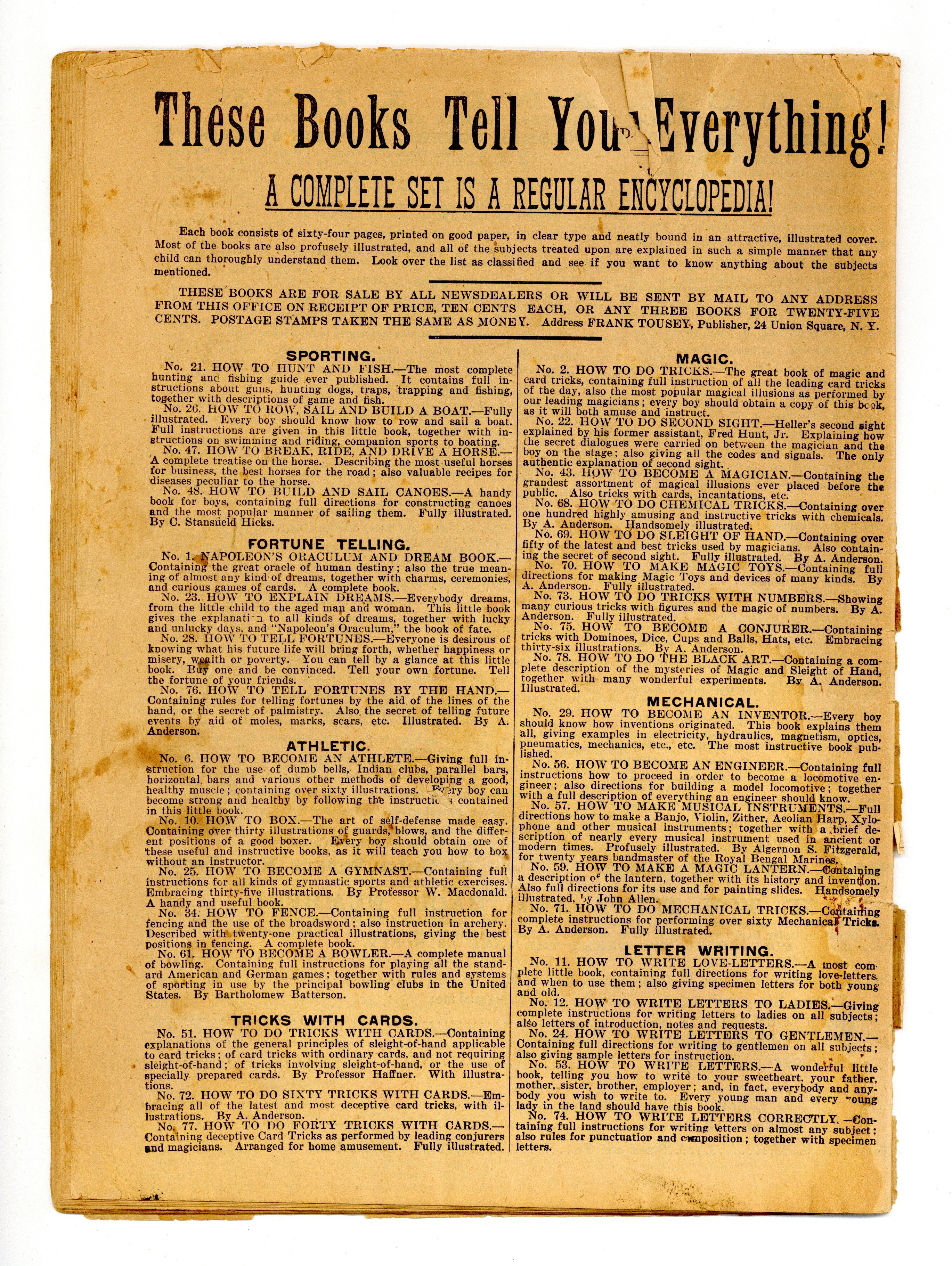 Published Mar 1901 by Frank Tousey.$5.00- No Back Cover. Water damage: Extensive.