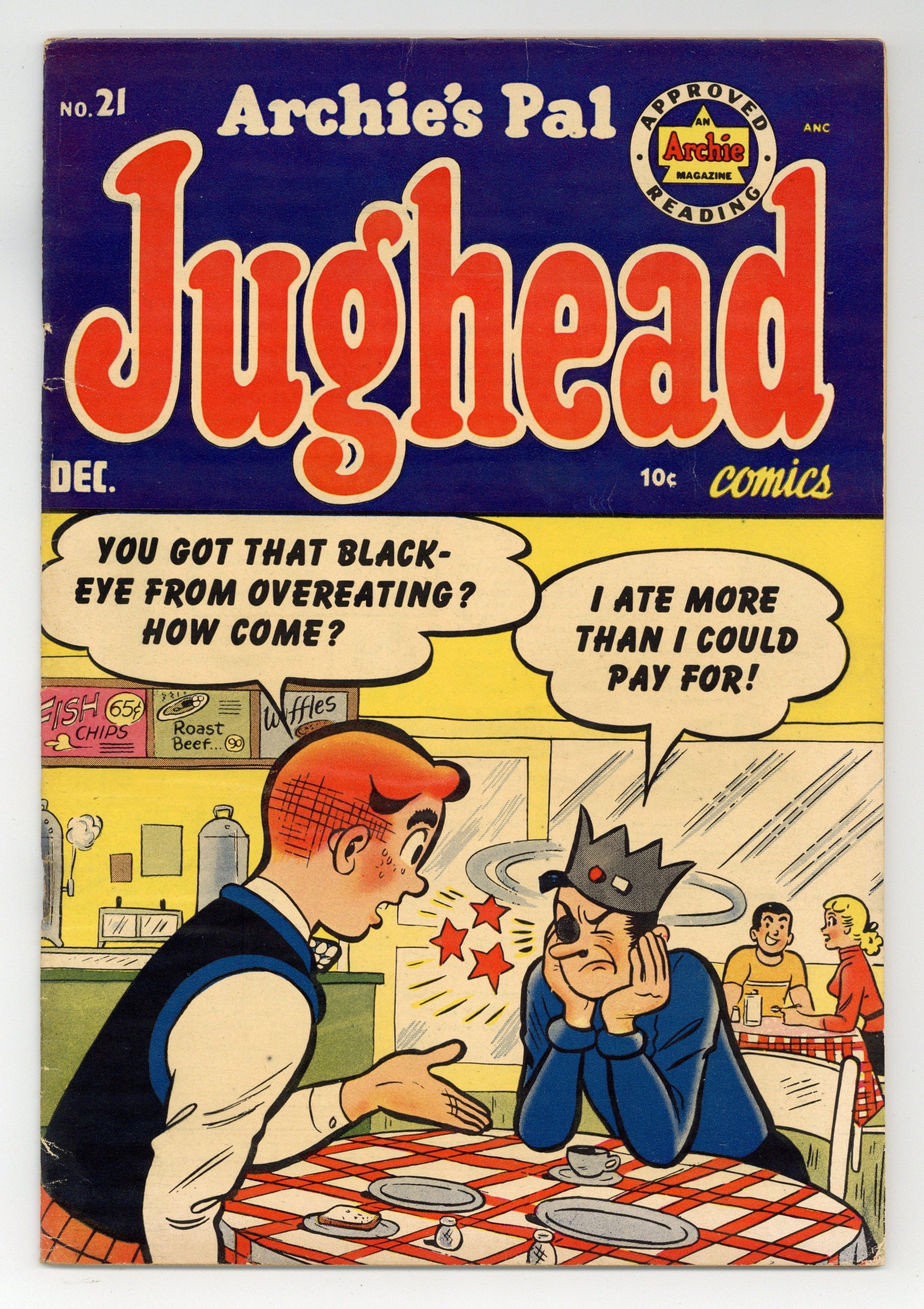 "Talk is Cheep"!";Jughead tries to teach his parakeet to talk, but the only person it will talk to is Mr. Weatherbee. "What's Watt?"; Souphead gets confused when he thinks Veronica is planting light bulbs instead of flower bulbs. "Paper Caper"; Jughead is acting strangely as he searches for a mysterious "paper." "Heavens to Jugsy"; Jughead tries to get past the doorman of the Riverdale Hotel in order to study stars with his new telescope. "The Awful Tooth!", art by Harry Lucey; Jughead and Betty talk about associating things with certain people. 36 pgs., full color. Cover price $0.10.