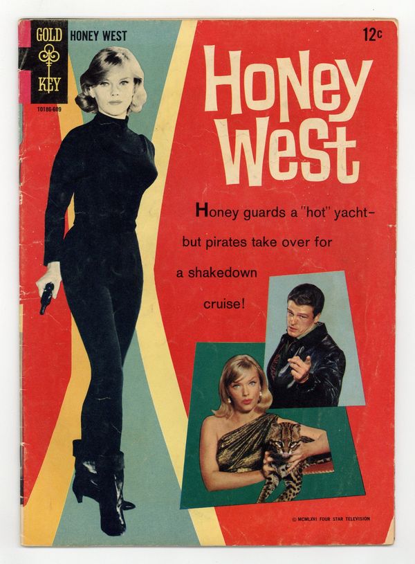 Anne Francis/John Ericson photo cover. Adventures based on the TV series. "The Underwater Raiders," script by Paul S. Newman, art by Jack Sparling; Honey is hired to guard the jewelry at a party on a yacht, but thieves in frogman gear steal the model of an innovative new bomber instead; With help from Sam, Honey tracks them down and exposes the yacht owner as a spy trying to steal defense secrets. "The Fall Guy," script by Paul S. Newman, art by Jack Sparling; Honey investigates why gangsters are forcing Acey to throw his wrestling matches. She finds the ringleader and exposes him, leaving Acey free to win. Photos on front, back and inside covers. # on cover 10186-609. No month listed. 36 pgs., full color. Cover price $0.12.