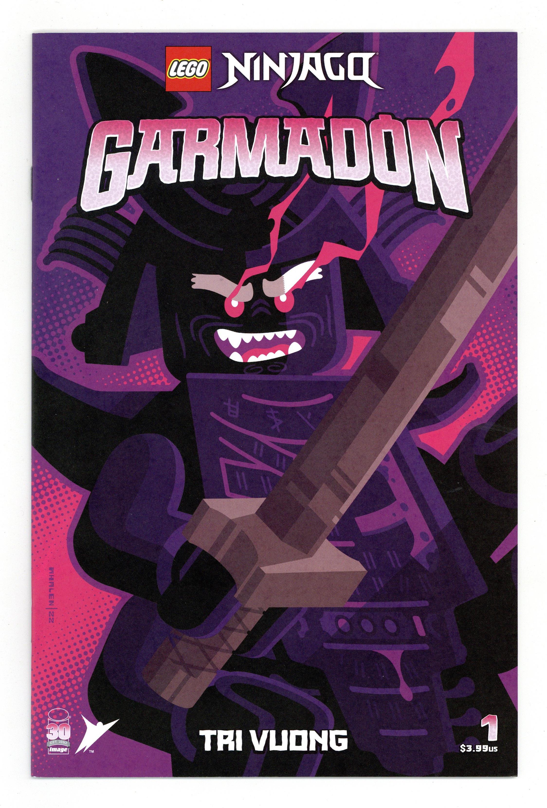 $2.65Limited 1 for 10 Retailer Incentive Variant Cover. Story and Art by Tri Vuong. Cover by Tom Whalen. SERIES PREMIERE! The All-New LEGO NINJAGO Comic Book Series Starts HERE! Perfect for fans new and old alike, an official new chapter of the LEGO NINJAGO universe begins here! Far away from Ninjago City, a village is terrorized by a mysterious new threat when they're saved by a stranger with incredible powers known as… Garmadon, Lord of Destruction?! Has Garmadon turned over a new leaf since his disappearance, or is this just the first step in his master plan of finally defeating Master Wu and the ninja forever? The first collaboration between the LEGO Group and Skybound kicks off from rising star writer/artist TRI VUONG (EVERYDAY HERO MACHINE BOY)! LEGO, the LEGO logo, the Brick and Knob configurations, the Minifigure and NINJAGO are trademarks and/or copyrights of the LEGO Group. 2022 The LEGO Group. All rights reserved. 28 pages, full color. Cover price $3.99.