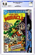 Direct Edition. Tired of and worried about the death-defying stunts, Big Barda demands that her husband, Scott Free/Mr. Miracle stop and live a normal life. But their enemies have other ideas for their life in "No Escape from Destiny." This epic story features Mr. Miracle and Big Barda and many of the regular and semi-regular characters like Oberon, Funky Flashman, Kalibak, Granny Goodness, and Darkseid from Jack Kirby's original Mr. Miracle series. Script by Mark Evanier and art by Steve Rude and Mike Royer. Issue also has a three-page re-telling of Mr. Miracle's origin. Cover price $1.25.