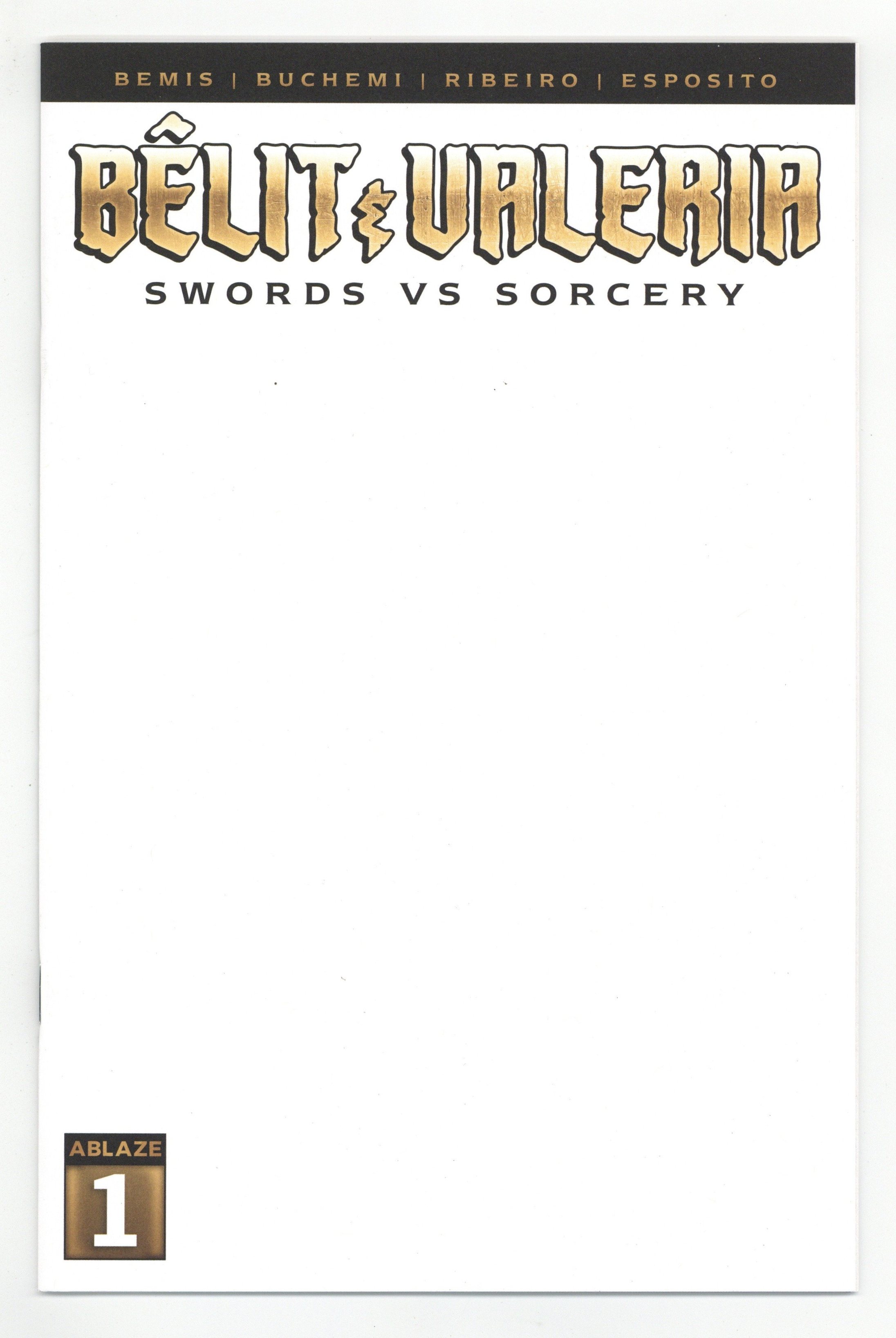 $7.00Blank Cover. Written by Max Bemis. Art by Rodney Buchemi. The Blank Cover Edition - available as a variant for BELIT & VALERIA #1 - features the same great story and art, but with a blank wraparound cover for you to get your favorite artist to draw their own cover! Robert E. Howard's Hyboria UNLEASHED! See its true nature, its unrestrained violence and sexuality! Rising from a watery grave, Belit once again finds herself commanding a ship, sailing the seas in search of adventureā¦and answers. But when a deal goes wrong, she finds herself teamed up with the woman she was holding prisoner: the equally beautiful and deadly, Valeria. These two iconic characters will find themselves traveling across Hyperborea on a mission to find out how Belit lives once again that will lead them straight into dangerā¦from the gods themselves! Bonus material included: The original Robert E. Howard essay 'The Hyborian Age'. 32 pages, full color. Mature Readers Cover price $10.00.
