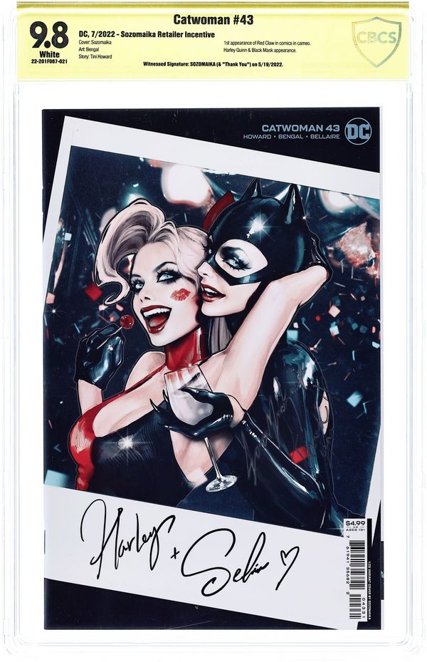 Limited 1 for 25 Retailer Incentive Variant Cover. Written by Tini Howard. Art by Bengal. Cover by Sozomaika. VROOM VROOM! We all have that friend we call when we want a wild girls night out—and for Catwoman, that friend is Harley Quinn. Its a night of hip whips and hot laps at the roller derby, complete with a little road-trip crime. It might even be the type of girls night that gets sealed with a kiss, if Catwomans allies back in Gotham can hold down the fort while the Cats away... 32 pages, full color. Rated T+ Cover price $4.99.