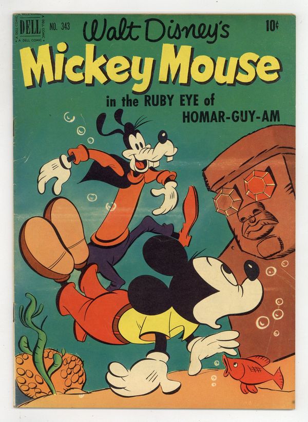 Cover by Dan Gormley. Stories by Don R. Christensen and various. Art by Paul Murry and various. Featuring the tales "The Ruby Eye of Homar-guy-am" and "The Dog Show," plus three untitled 1-page stories. Starring Mickey Mouse, Goofy, Black Pete, Minnie Mouse, Morty and Ferdie! 36 pages, full color. Cover price $0.10.