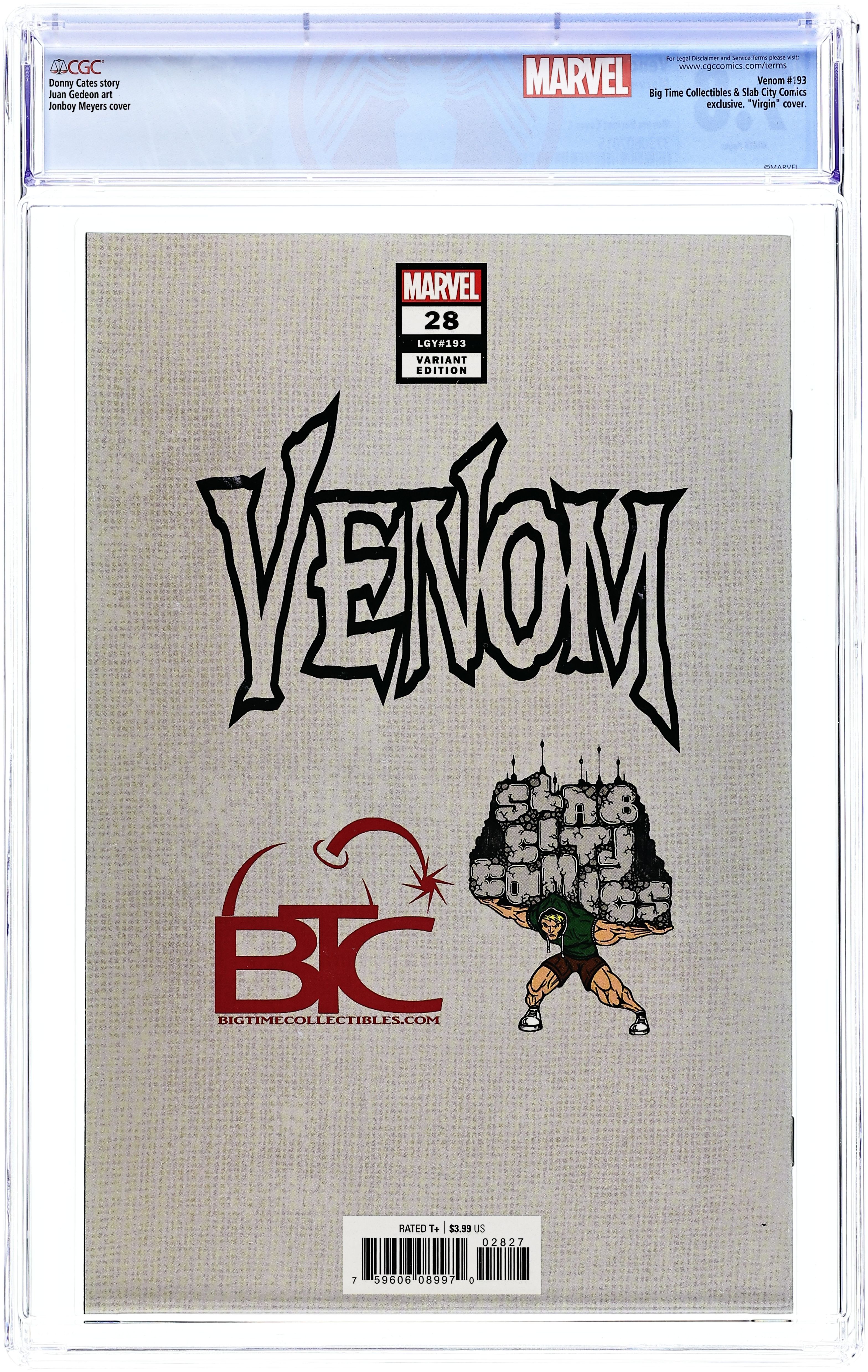 Tags: Marvel Legacy Numbering: Venom (part 193)$16.00Big Time Collectibles and Slab City Comics exclusive secret virgin cover by Jonboy Meyers. Written by Donny Cates. Art by Juan Gedeon. As if ONE new threat to Eddie Brock and his son, Dylan, wasn't bad enough, an entirely different foe rears its monstrous head as Eddie and Dylan try to find their way! But in this dangerous new world, Eddie's also enlisted the help of some new allies, some of whom have familiar faces - and who Eddie may never want to leave! 36 pages, full color. Rated T+