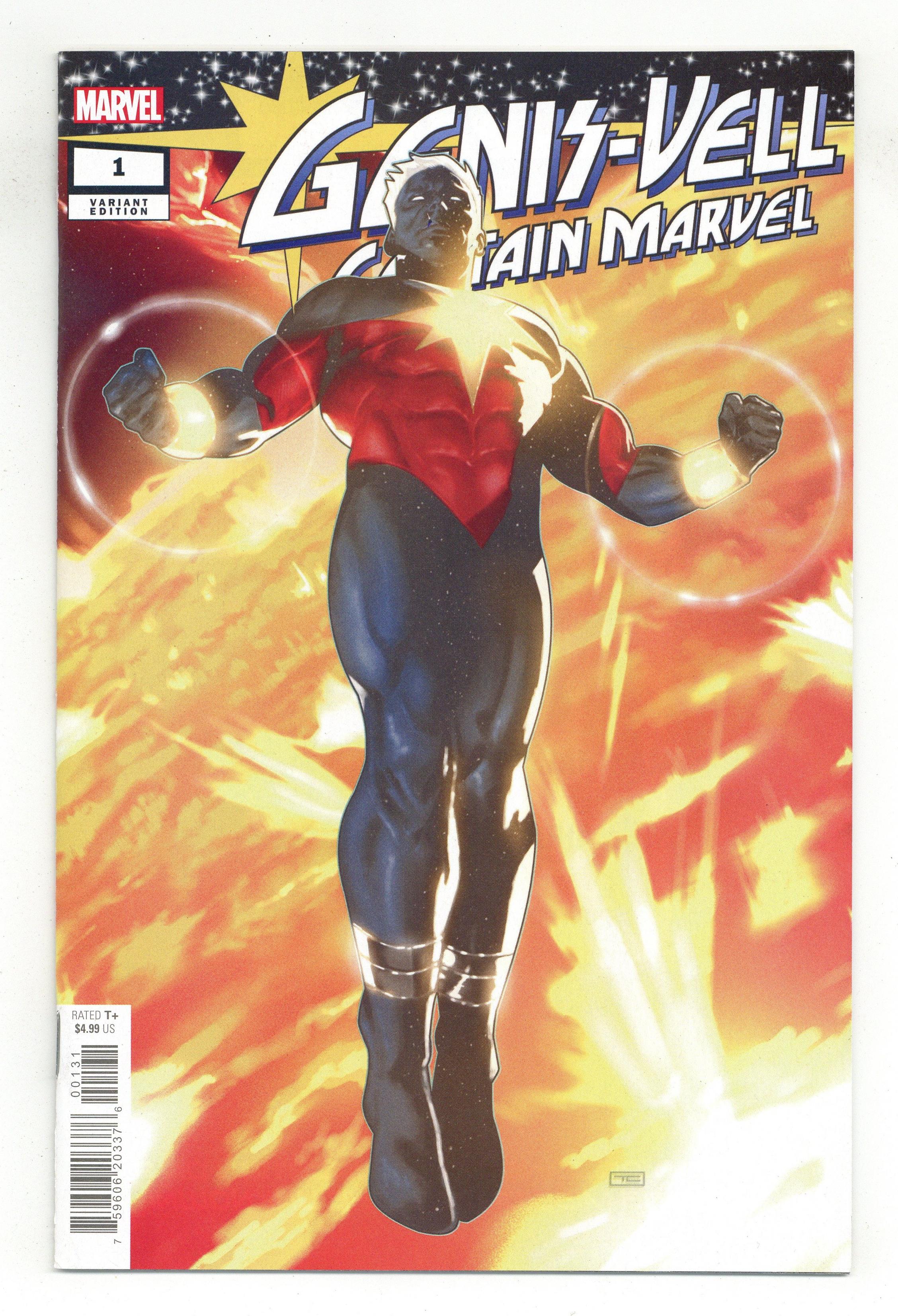 $11.00Limited 1 for 50 Retailer Incentive Variant Cover. Written by Peter David. Art by Juanan Ramirez. Cover by Taurin Clarke. PETER DAVID RETURNS TO GENIS-VELL, SON OF THE ORIGINAL CAPTAIN MARVEL! Both now back in the land of the living, Genis-Vell and Rick Jones are about to come crashing back into each other! Witness Genis-Vell, Captain Marvel return to the pages of his very own series written by legendary scribe Peter David, drawn by artist Juanan Ramírez! Can Rick Jones save Genis - and himself - before they both fade out of existence? Is Rick's ex-wife, Marlo, the key? Find out when Peter David returns to take Genis-Vell to all-new heights! 36 pages, full color. Rated T+ Cover price $4.99.