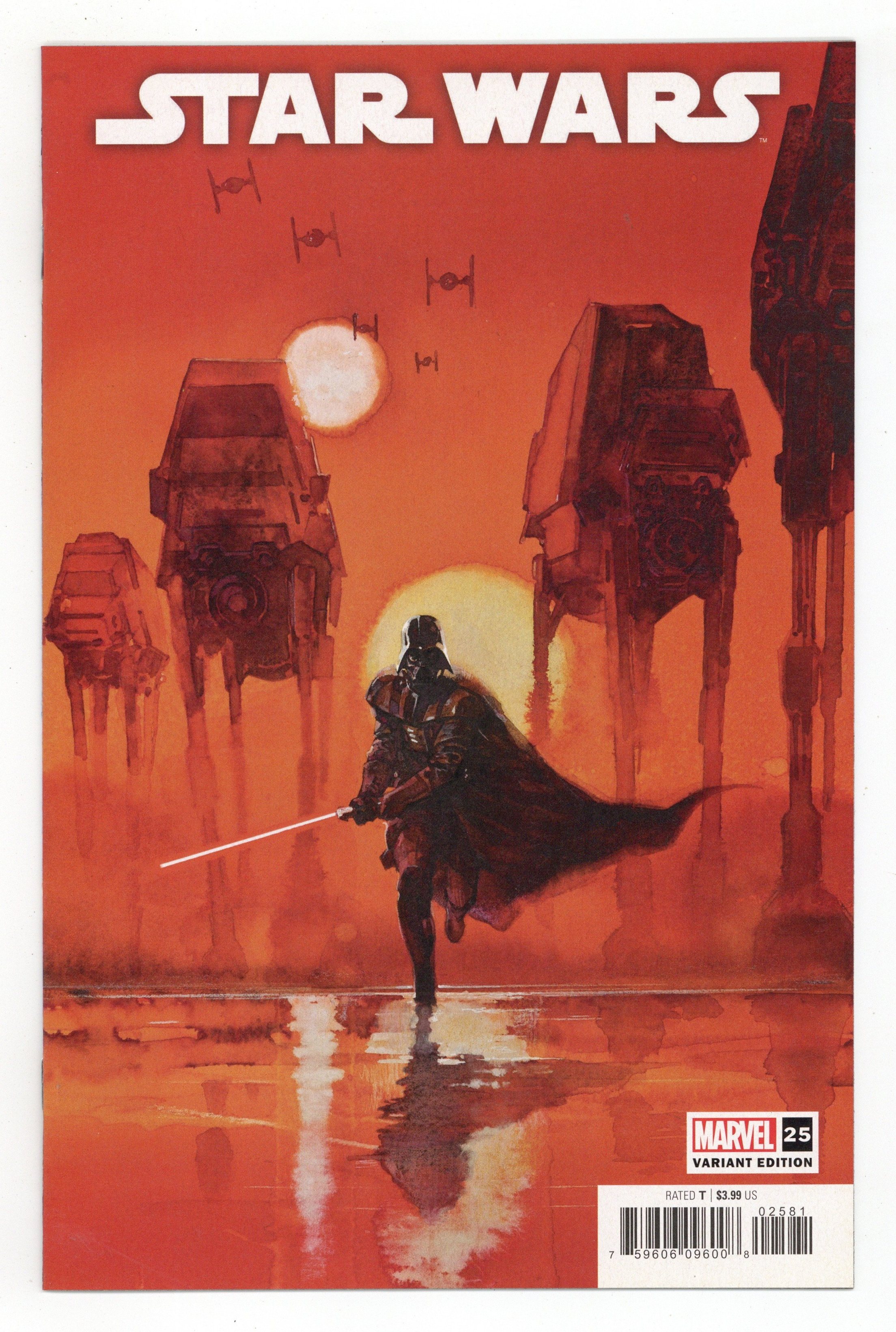 Tags: Star Wars$18.00Limited 1 for 50 Retailer Incentive Variant Cover. Written by Charles Soule. Art by Giuseppe Camuncoli. Cover by Alex Maleev. A Celebration across the Galaxy for STAR WARS' 25th issue! With stories set from the Prequel to the Sequel eras, experience new tales of OBI-WAN & ANAKIN, DARTH VADER, POE DAMERON and KYLO REN. Join Charles Soule, along with his previous artistic collaborators, for this era-spanning celebration! 28 pages, full color. Rated T Cover price $3.99.