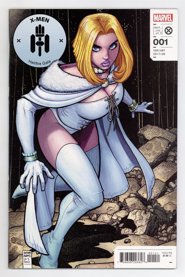 Limited 1 for 25 Retailer Incentive Variant Cover. Written by Gerry Duggan. Art by Matteo Lolli; C.F. Villa; Marvel Various. Cover by Arthur Adams. NEW TEAM REVEALED! At last year's gala, mutants changed the face of the solar system, terraforming Mars and claiming it for mutantkind. Do you think you can afford to miss this year's gala, all contained in this one over-sized issue!? 68 pages, full color. Rated T+ Cover price $7.99.