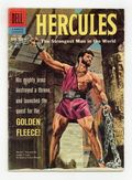 $15.50Indicia title is "HERCULES, No. 1006." Adapted from the 1959 movie "Hercules." Painted cover art. Intro with photos. Hercules, script by Paul S. Newman, art by John Buscema; Subject to a tyrant king's commands, Hercules must endure many tests of strength then sail in search of the Golden Fleece; Finally, he must overthrow the evil monarch's rule in order to restore the rightful king to his throne. Greek Warfare, art by John Buscema; facts about the equipment and strategy used by the Greeks in war. The Labors of Hercules, art by John Buscema; some of the 12 labors of Hercules from the Greek myths. 36 pages, full color. Cover price $0.10.