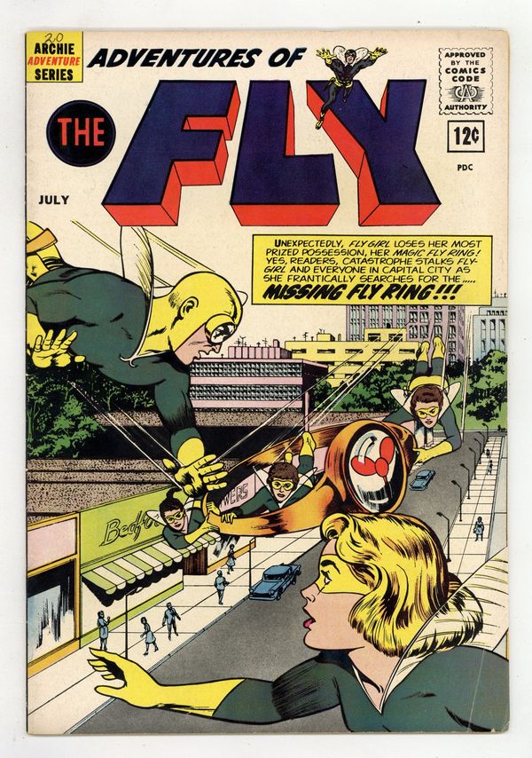 Edited by Victor Gorelick. Cover by John Rosenberger. Stories by Robert Bernstein and John Rosenberger. Archie Comics amiable and agile super-hero The Fly battles an assortment of nefarious villains. Plus, Fly Girl loses her Fly Ring. 36 pages, full color. $0.12. Cover price $0.12.