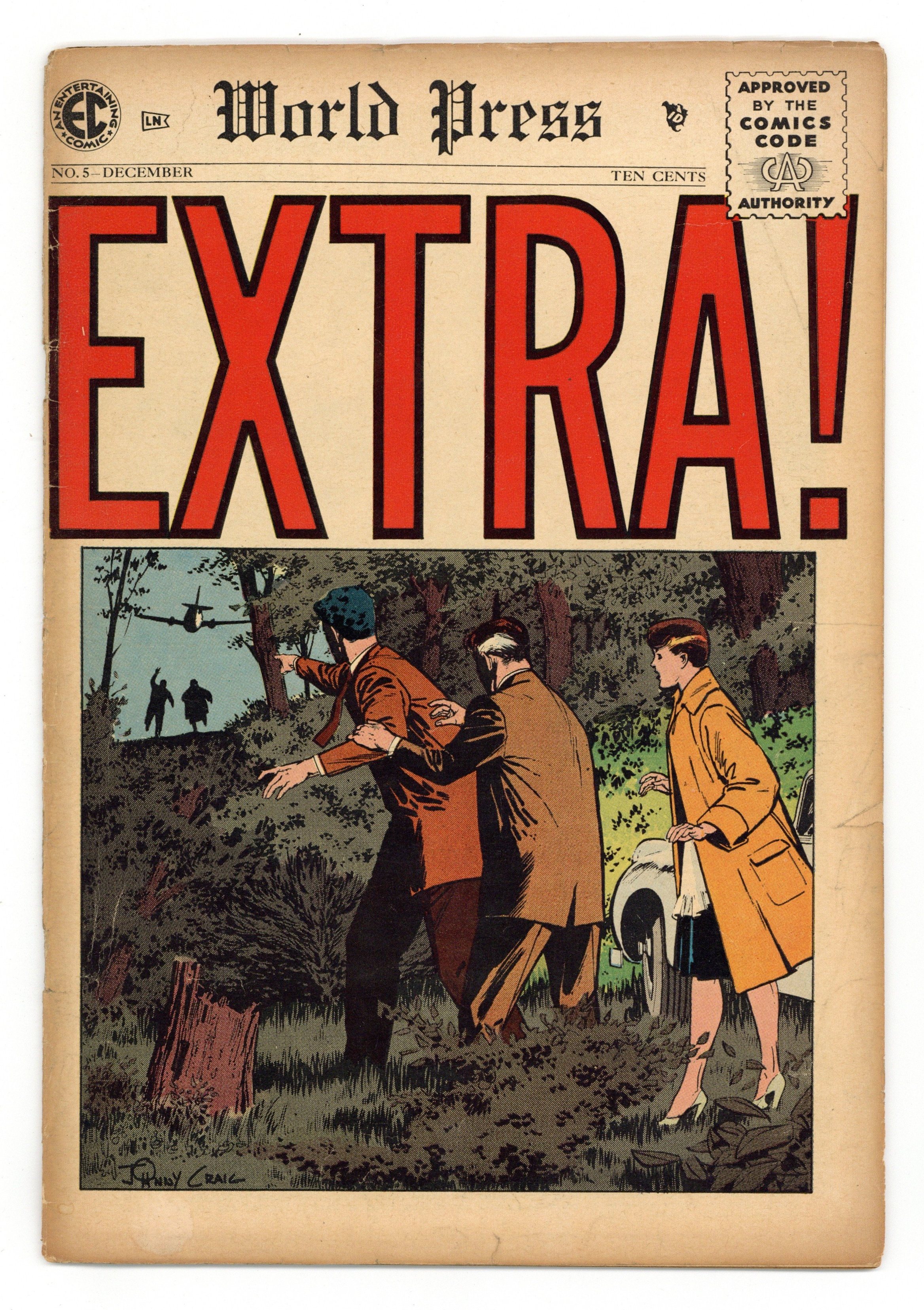 Cover by Johnny Craig. Stories by Johnny Craig and others. Art by John Severin, Johnny Craig, and Reed Crandall. One of EC Comics' late New Direction titles, a response to the new Comics Code, featuring reporters finding danger while pursuing stories. Reporter Keith Michaels tracks diamond smugglers on the storm-swept, rocky coast of the Long Island Sound. Keith investigates a murder and the theft of intelligence documents during an upscale Washington party, in a story with more terrific art by Johnny Craig. Dateline: Long Island Sound; Two Timer; Steve Rampart; Geri Hamilton; The Entertainment Box; Dateline: Germersheim. Final issue of the series. 32 pages, Full Color. Cover price $0.10.