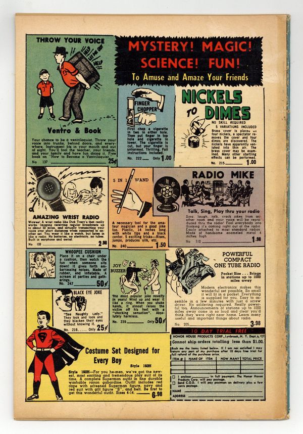 Cover by Jack Kamen. Stories by Dan Keyes and Robert Bernstein. Art by Marie Severin and Jack Kamen. One of EC Comics' late New Direction titles, a response to the new Comics Code. Perhaps the strangest comic of that line, if not of all time, this features ordinary people Freddy, Ellen and Mark as they undergo Freudian analysis to find the root of their neuroses. Definitely one of a kind. Featuring some stories by Daniel Keyes, later the author of the science fiction classic Flowers for Algernon. In lieu of mail, a letter to the reader from the editors, pointing out that insane people don't see psychiatrists, and stating the plan to cover each person over a series of issues as they go through therapy. Ellen feels a great weight has been lifted after the doc points out that her problems stem from her flawed relationship with her parents and a strange accident when she was a little girl. First issue with the Comics Code seal on the cover. Case No. 101 Male Session 2: Freddy Carter; Case No. 102 Female Session 2: Ellen Lyman; Your Doodles Give You Away; Case No. 103 Male Session 2: Mark Stone. 32 pages, Full Color. Cover price $0.10.