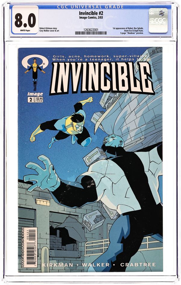 (W) Robert Kirkman (A) Cory Walker (Cover) Cory Walker & Bill Crabtree In stores the week of February 12th. The Concept: Mark Grayson is just like most everyone else his age. He's a senior at a normal American high School. He has a crappy part time job after school and on weekends. He likes girls quite a bit, but doesn't quite understand them. He enjoys hanging out with his friends, and sleeping late on Saturdays, at least until the good cartoons come on. The only difference between Mark and everyone else, is that his father is the most powerful superhero on the planet, and as of late, he seems to be inheriting his father's powers. Which sounds okay at first, but how do you follow in your father's footsteps when you know you will never live up to his standards? This Issue: Mark has come down with a case of insomnia, and while most people would trot down to the living room to watch infomercials, Mark, being a superhero, has a few more entertaining options. During his leisurely evening flight, he spots a robbery in progress at the local Toys R Toys. But why would a villain like the dreaded Ogre want to steal an entire shipment of Game Boxes? And why is the world's premier teenaged super team on hand to help Invincible stop him? And when did that girl in 3rd period science class get so cute? Nothing is what it seems, and everything seems like it's nothing, but one thing's for sure, it's entertaining as all get out! FC, 32pp $2.95 Ongoing monthly series Cover price $2.95.