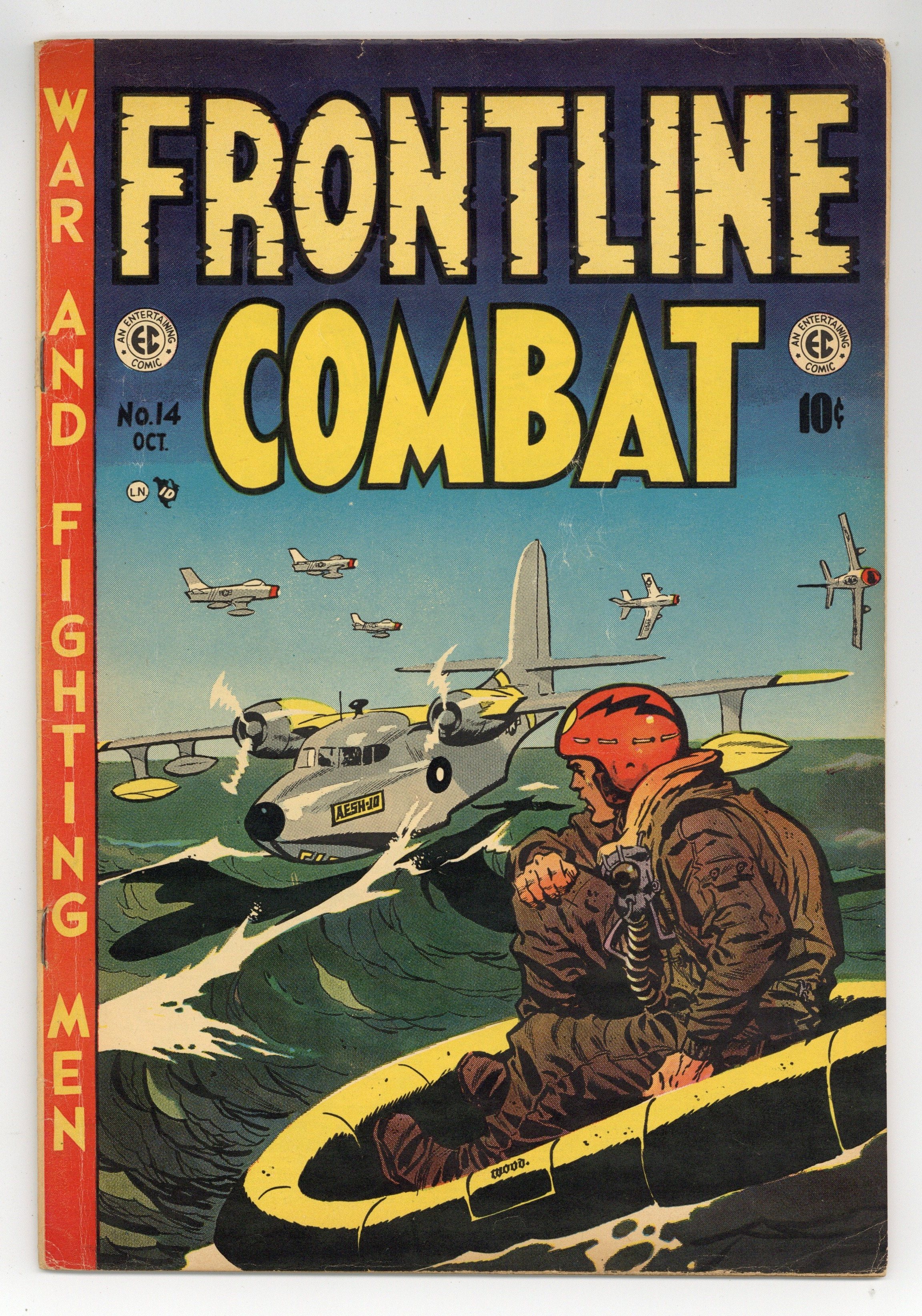 Cover by Wally Wood. Stories by Harvey Kurtzman and Jack Davis. Art by Wally Wood, Joe Kubert, Harvey Kurtzman, George Evans, and Jack Davis. The companion title to Kurtzman's groundbreaking war comic Two-Fisted Tales, showcasing the brutal realities of war. During the American Revolution, the seagoing Battle of Flamborough Head inspires John Paul Jones to say "I have not yet begun to fight!" in a story with early art by comics legend Joe Kubert. Pioneering WWI air ace Max Immelman contributes to the development of synchronized guns after accidentally shooting himself down. A gung-ho young Confederate soldier gets a belly full of war. Albatross!; Bonhomme Richard!; Abduction; Immelman!; Whupped! 36 pages, full color. Cover price $0.10.
