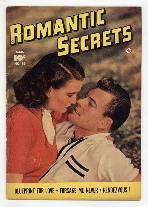 Stories and art by John Martin and Marc Swayze. This early romance comic from Fawcett had particularly complex plots to go with the tears and kisses. Cynthia is raising her brother Bob, who wants to be a doctor, but tragedy results when she insists that he become a boat designer like their late father. In a hybrid Western-romance story, lawman Cole meets Lila, daughter of late lawman Ace, as they try to figure out why Ace's old foe is celebrating his memory in an old ghost town. Ted makes a play for a woman just to get even with her for dumping his friend, but he didn't expect to fall in love with her. Blueprint for Love; Rendezvous; Candy Kisses; Forsake Me Never. 32 pages, Full Color. Cover price $0.10.