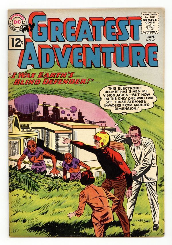 Cover pencils by Dick Dillin, inks by Sheldon Moldoff. We Braved the Trail of the Ancient Warrior!, art by Howard Purcell; Two pilots are forced to land in a storm and must make their way to their destination through various dangers. Ad for Batman Annual #2, pencils by Curt Swan, Sheldon Moldoff, and Dick Sprang, inks by Charles Paris. Peter Puptent Explorer humor page by Henry Boltinoff. I Battled the Magic of Mathonwy, art by George Roussos; An explorer and his assistant find a chest of magical artifacts belonging to the long-dead wizard Mathonwy, but the assistant plans to steal the chest and sell it to a local mobster. Ad for Aquaman #1, art by Nick Cardy. Mystery of the Mound-Makers text story by Jack Miller. I Was Earth's Blind Defender, art by Ruben Moreira; A blind scientist invents a device that will allow him to see again, but it also allows him to see aliens from another dimension who are planning an invasion. Ad for Superman Annual #4, pencils by Curt Swan, inks by George Klein. 36 Pages, Full Color. Cover price $0.12.