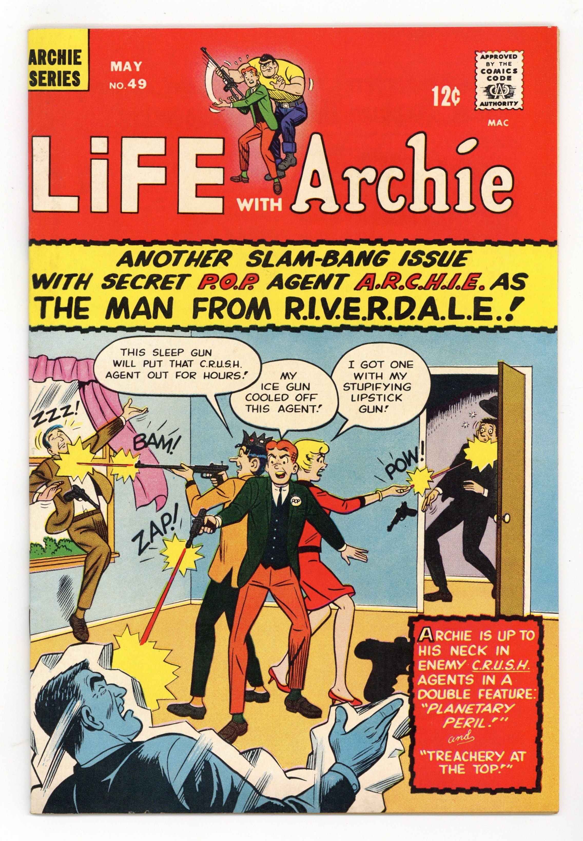 Cover art by Bob White. Planetary Peril!, script by Frank Doyle, pencils by Bob White, inks by Marty Epp; P.O.P.'s agents A.R.C.H.I.E. and J.U.G.H.E.A.D. battle a C.R.U.S.H. plot to brainwash an entire planet of creatures into becoming agents of evil. Treachery at the Top!, script by Frank Doyle, pencils by Bill Vigoda, inks by Marty Epp; V.E.R.O.N.I.C.A. alerts her fellow P.O.P. agents to a C.R.U.S.H. conspiracy to take over her father's corporation. Tanks! one-pager featuring Li'l Jinx, script and art by Joe Edwards. 36 pgs. $0.12. Cover price $0.12.