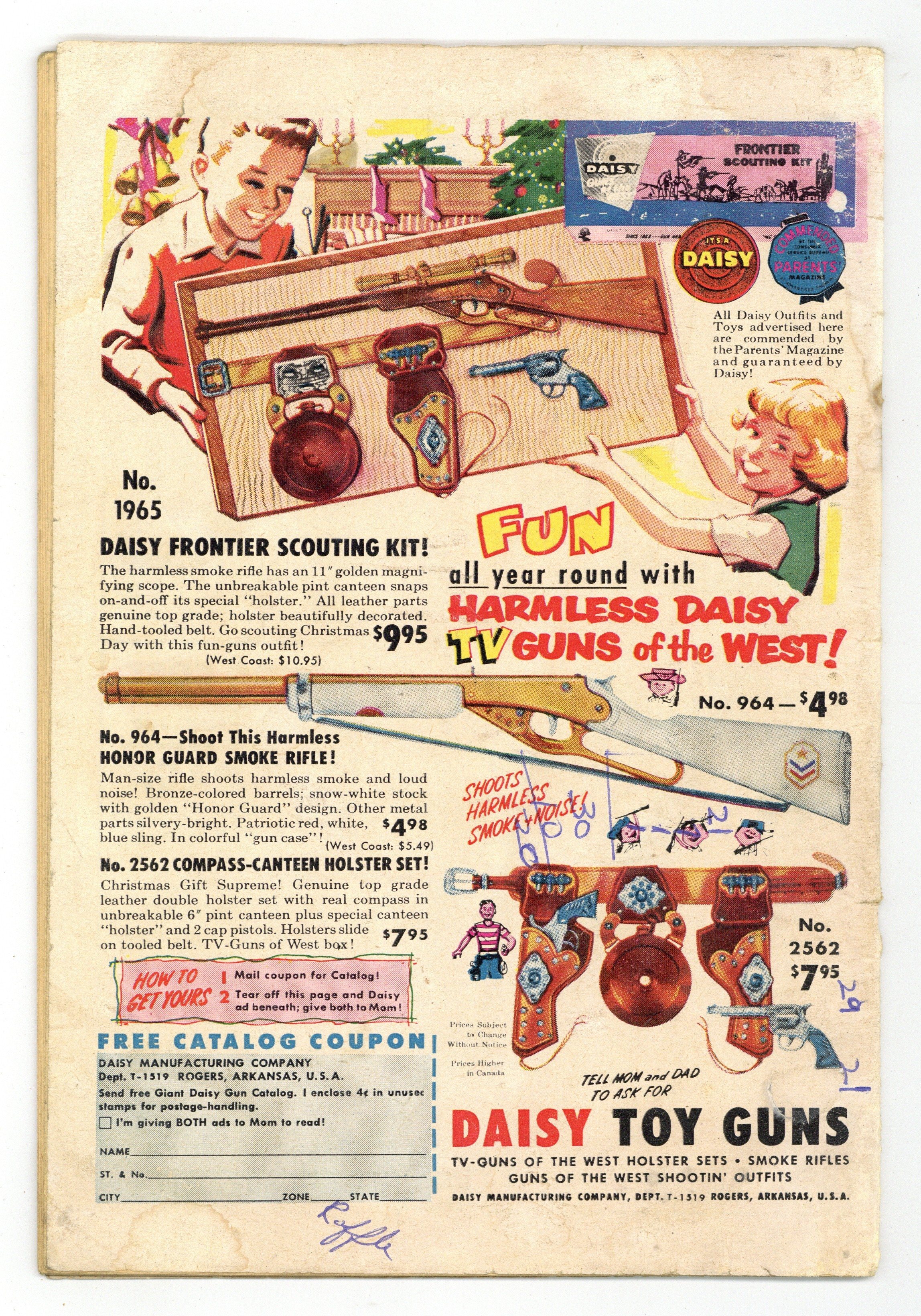 Tags: Superman$48.00Cover pencils by Curt Swan, inks by Stan Kaye. The Amazing Superman Junior, script by Jerry Coleman, pencils by Wayne Boring, inks by Stan Kaye; Superman makes himself, Perry, Jimmy, and Robin look old in order to teach Lois a lesson, but then someone with super-powers shows up and claims to be Superman Junior. Peg humor page by Henry Boltinoff. Lois Lane – Convict, script by Bill Finger, art by Kurt Schaffenberger; Lois takes a bribe and is forced into crime by Baldy Pate. Cora the Car Hop humor page by Henry Boltinoff. Lieutenant Lois Lane, U.S. Army!, script by Bill Finger, art by Kurt Schaffenberger; Lois and Clark enlist in the Army for a month to get a story, but Lois's rank seems to go to her head, causing her to act like a bully toward everyone around her. 36 Pages, Full Color. Cover price $0.10.