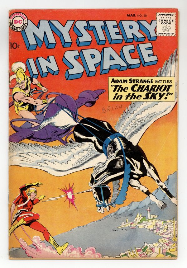 Adam Strange stars in "Chariot in the Sky" (pencils by Carmine Infantino). Back-up stories: "The Dancing Trees of Polaris-Seven!" (pencils by Gil Kane) and "The Amazing Journeys Into Space!" (art by Sid Greene?). Kane cover pencils. 36 Pages, Full Color. Cover price $0.10.