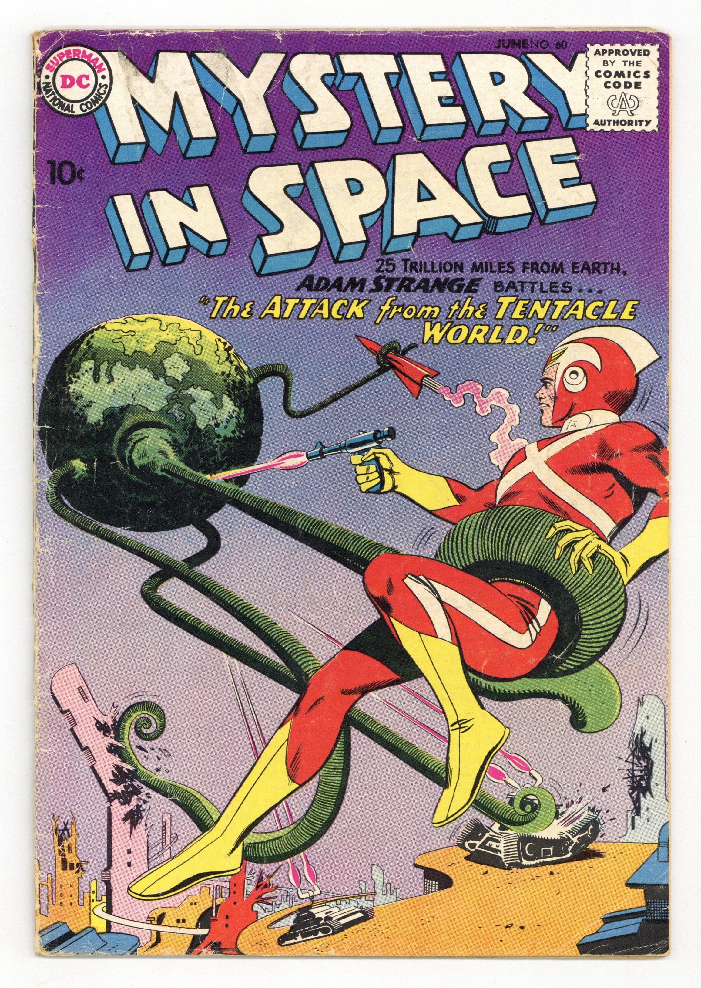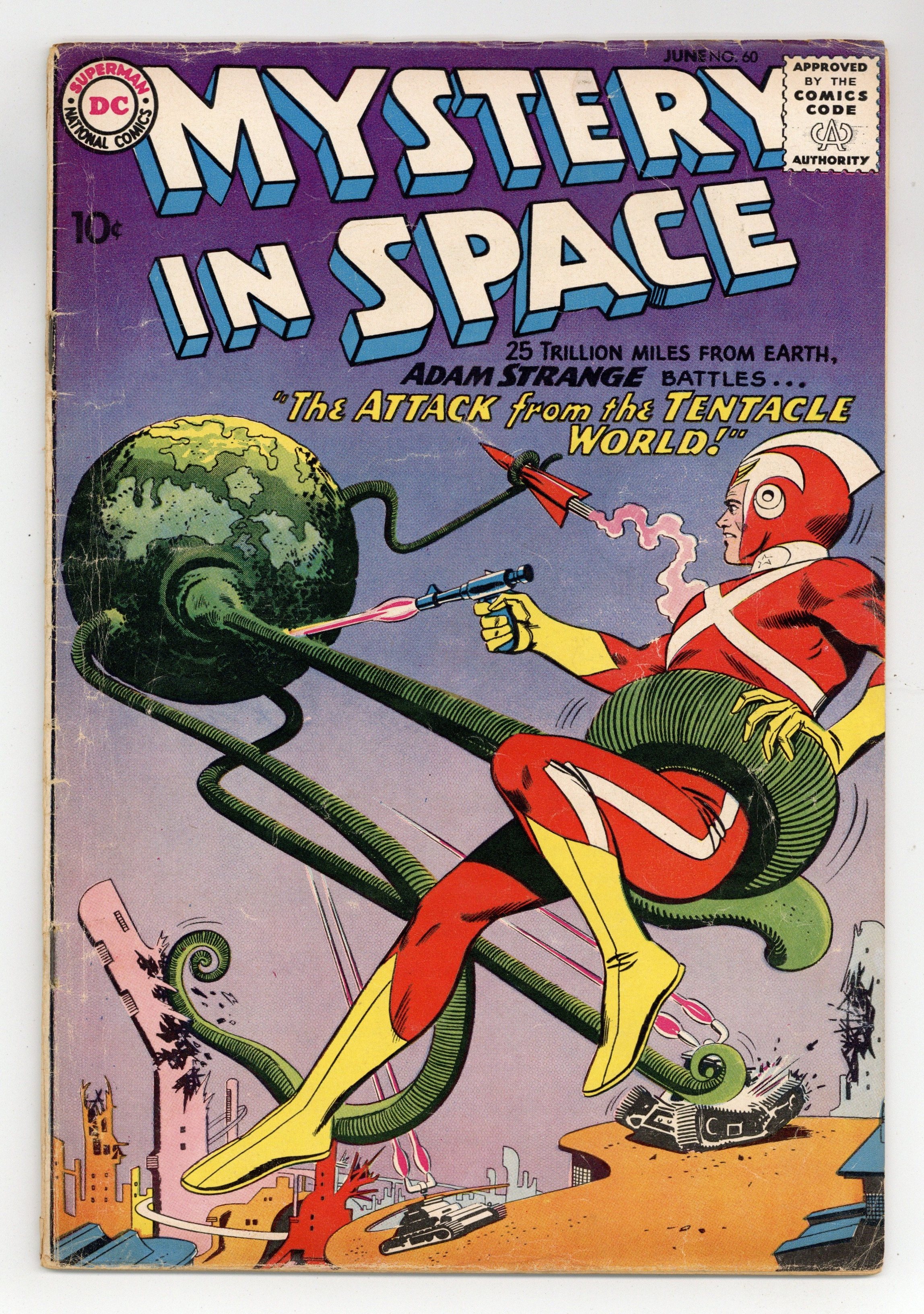Adam Strange stars in "The Attack of the Tentacle World!" (pencils by Carmine Infantino). Back-up stories: "Doom Bombs From Jupiter" (pencils by Gil Kane) and "Mystery of the Synthetic Man!" (pencils by Sid Greene?). Kane/infantino cover. 36 Pages, Full Color. Cover price $0.10.