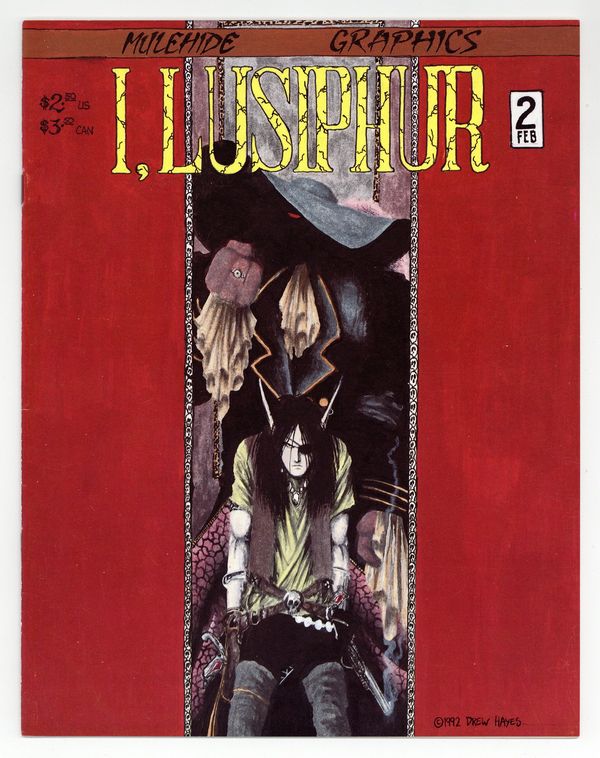 Published Feb 1992 by Mulehide Graphics.$16.00Cover by Drew Hayes. "Six-Tell Amlah," script and art by Drew Hayes; Against the advice of his friend and healer Lirilith, Lusiphur sets out to destroy the demon Six-Tell Amlah and reclaim his eye. Title changes to Poison Elves with #8. 28 pgs., B&W. $2.50. Cover price $2.50.