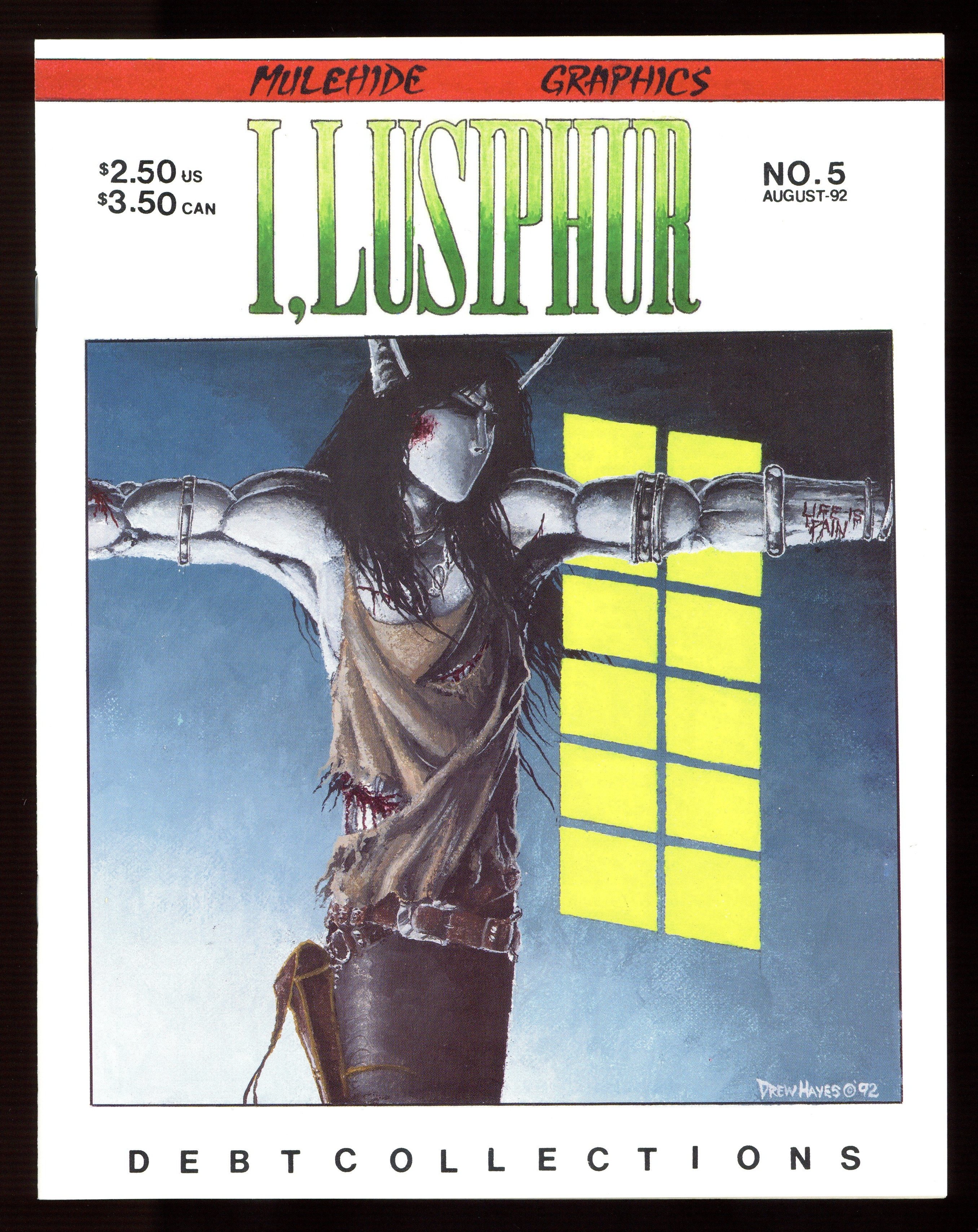 Published Aug 1992 by Mulehide Graphics.$60.00Autographed by Drew Haynes. Cover by Drew Hayes. "Debt Collections," script and art by Drew Hayes; Lusiphur faces withdrawal from the poison he became addicted to in issue #3, as punishment for refusing to return a favor to the Nick, an ancient crime lord; first glimpse of Lusiphur's background. Title changes to Poison Elves with #8. 28 pgs., B&W. $2.50. Cover price $2.50.