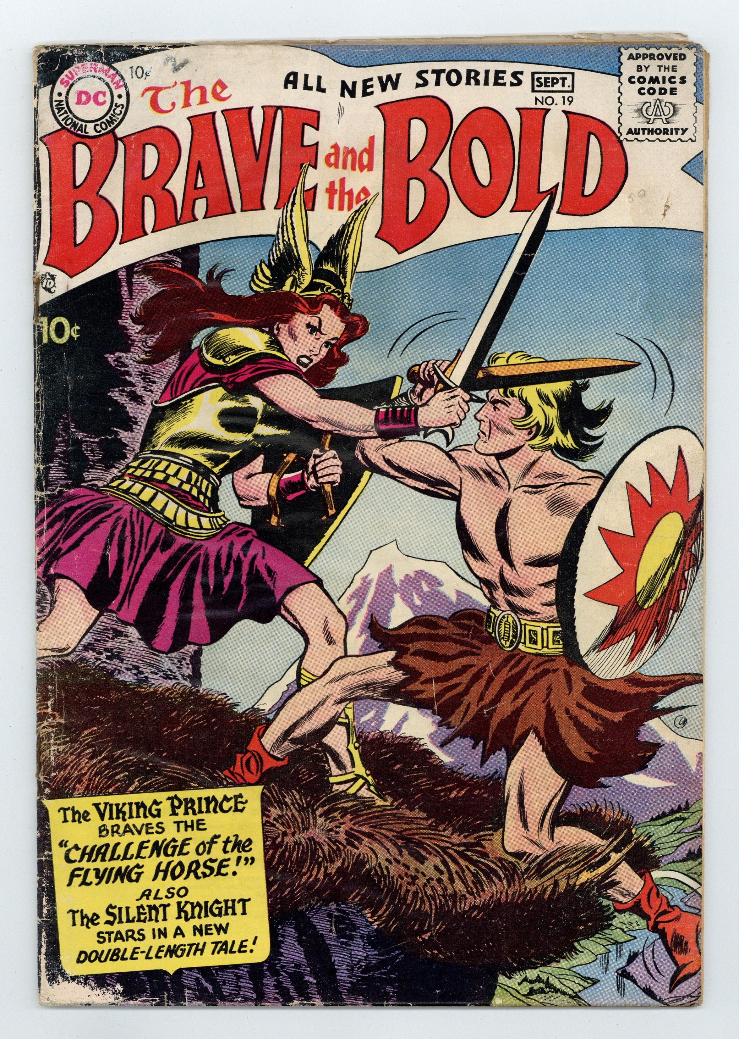 Cover by Irv Novick. "The Challenge of the Flying Horse," script by Bob Haney, art by Joe Kubert; To complete his latest task, Jon climbs a mountain where a great sea eagle has its perch, his goal to collect a single feather from its wing; A dark figure swoops out of the clouds and attacks him, not an eagle, but a winged horse; It carries Jon to Valhalla, a land in the clouds ruled by warrior women. The Last Days of the Knights article by Jack Miller, art by Raymond Perry; How gunpowder contributed to the end of the Age of Chivalry. Tournament of Knights non-fiction story by Julius Schwartz, pencils by Morris Waldinger, inks by Tommy Nicolosi; A summary of tournament rules followed by knights. "End of the Silent Knight," script by Robert Kanigher, art by Irv Novick; Alvin, a kitchen-boy of Camelot, dreams of joining the noble Knights of the Round Table; He is finally granted an opportunity when he is given a task to prove himself: capture the Silent Knight! Beasts of the Shield article by Julius Schwartz, pencils by Morris Waldinger, inks by Tommy Nicolosi; How and why animals were represented on shields. 36 Pages, Full Color. Cover price $0.10.