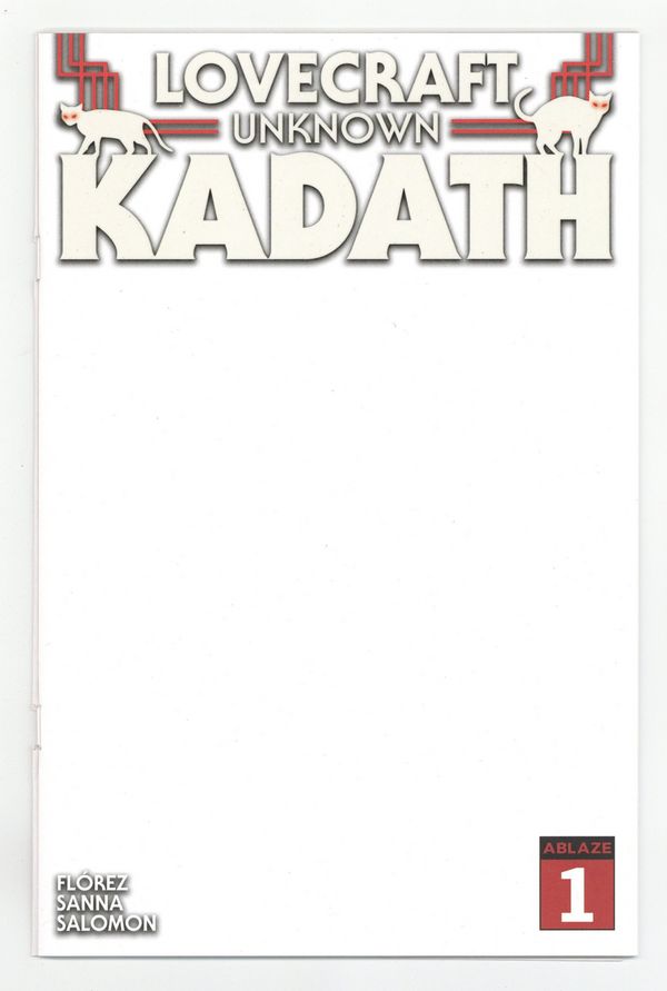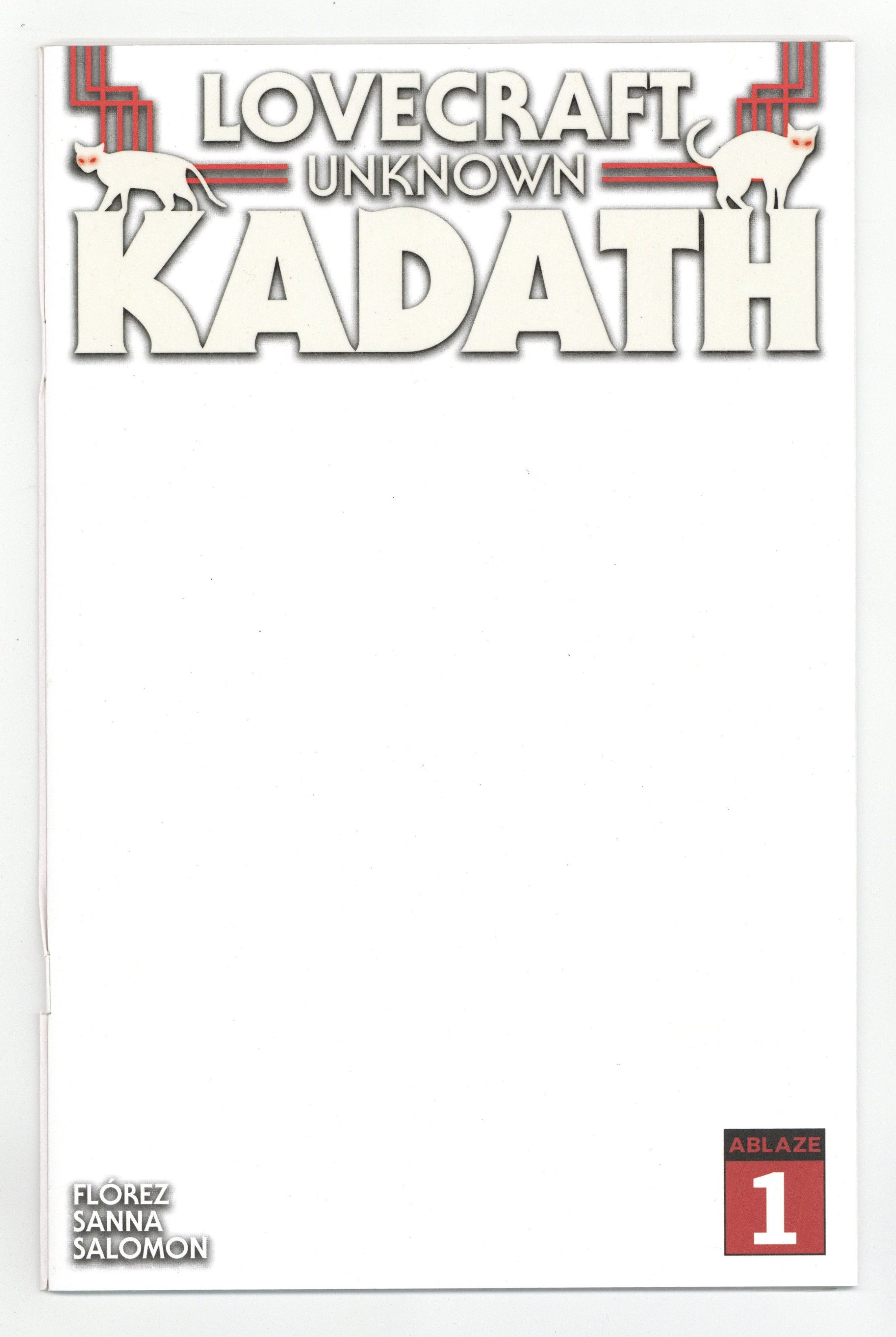 $5.20Blank Cover. Written by Florentino Florez. Art by Guillermo Sanna. The Glow-In-The Dark Blank Cover Edition - available as a variant for LOVECRAFT: UNKNOWN KADATH #1 - features the same great story and art, but with a blank wraparound cover for you to get your favorite artist to draw their own cover! 'Aa-shanta'nygh! You're free! Return the Gods of the land to their home in unknown Kadath! And pray that you never get to know me in any of my other thousand incarnations... For I am Nyarlathotep The creeping chaos!' Randolph Carter, a traveler to dreamland, tries not to wake up before reaching his goal, the elusive Kadath: the home of the gods, a place of fantasy and overflowing imagination. Carter walks through a world full of threats and abominable monsters, but also of palaces, exuberant cities, and geographies that remind man of his insignificant role on the gigantic cosmic chessboard. What are the reasons to keep going when everything around us is terrifying and lethal? Kadath may offer some answers to this question! An adaptation of H.P. Lovecraft's The Dream-Quest of Unknown Kadath unlike anything you've read before. As a bonus, also includes the original prose story! 32 pages, full color. Mature Readers Cover price $10.00.