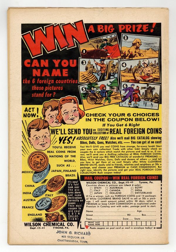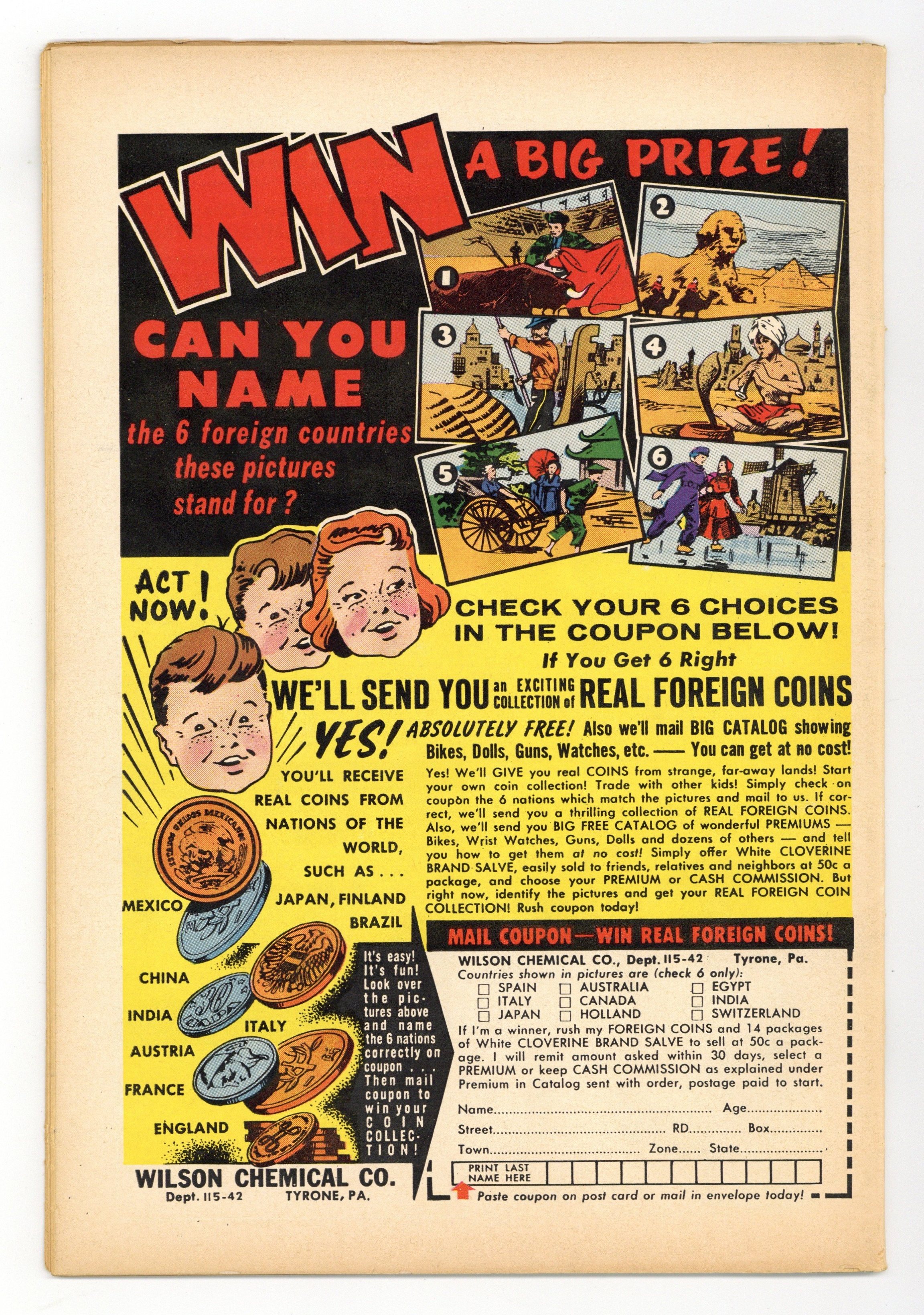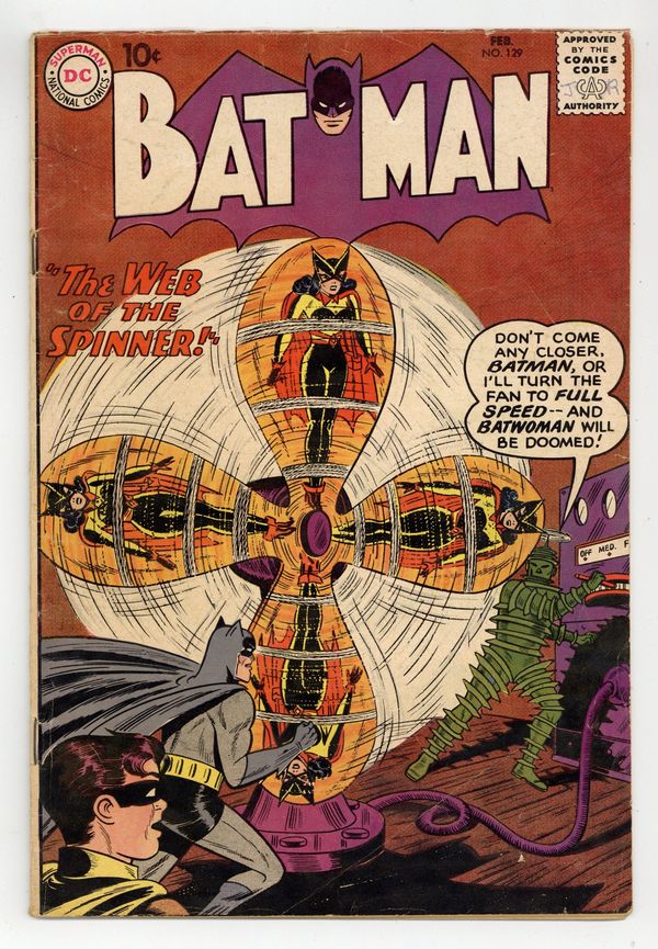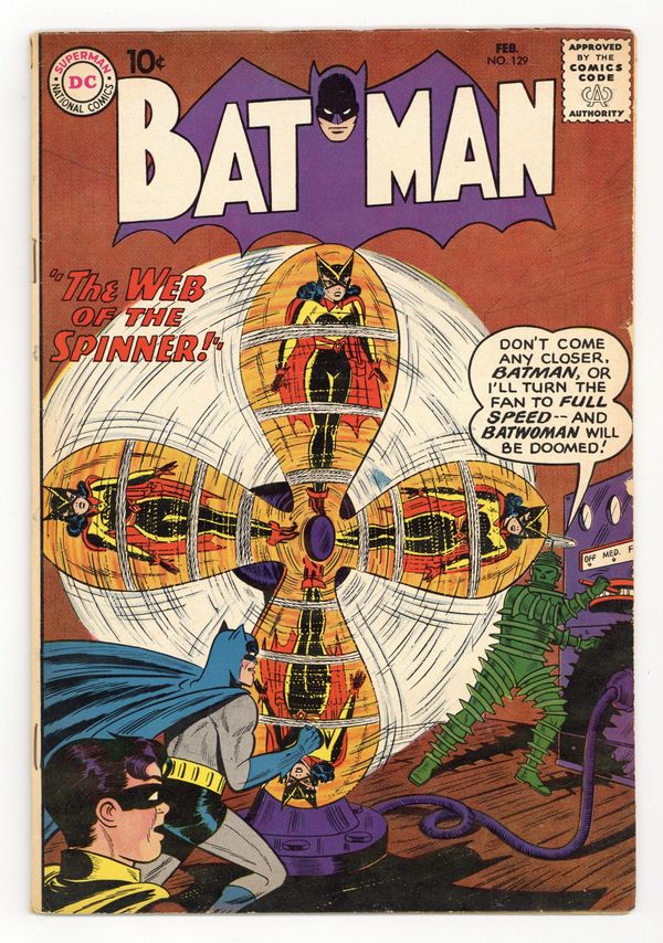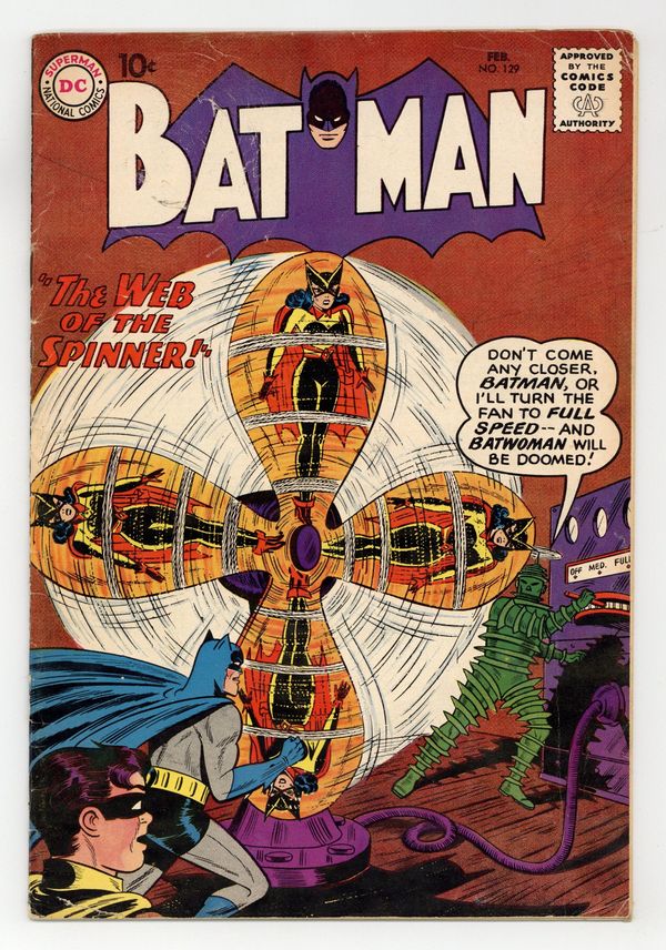 Cover by Sheldon Moldoff. "The Web of the Spinner," script by Bill Finger, pencils by Sheldon Moldoff, inks by Charles Paris; While Batman and Robin are tracking a criminal called the Spinner, Batwoman is checking out a mystic, whom she believes is running a scam operation. Detective Comics #275 ad. One-page Jail Jests story by Henry Boltinoff. The Brave and the Bold #28 ad. It's Fun to Help Others! public service announcement with Superboy, script by Jack Schiff, pencils by Curt Swan, inks by Stan Kaye. "The Man from Robin's Past," script by Bill Finger, pencils by Sheldon Moldoff, inks by Charles Paris; When stolen goods are found in the quarters of Sando the Strongman, a friend of the Grayson family who looked after Dick after his parents were murdered, Batman and Robin have to prove his innocence. Half-page Casey the Cop story by Henry Boltinoff. "Merriweather Jones--Crime Prophet!", script by Jerry Coleman, pencils by Dick Sprang, inks by Charles Paris; Merriweather Jones gets strange flashes that a crime is about occur and reports it to the police. Oddly enough, he's right; The Police believe Jones is in on the crimes and crooks believe he can help them hijack other crooks' stolen goods; It's up to Batman and Robin to save him from the crooks and clear him with the Police. World's Finest Comics #107 ad. 36 Pages, Full Color. Cover price $0.10.
