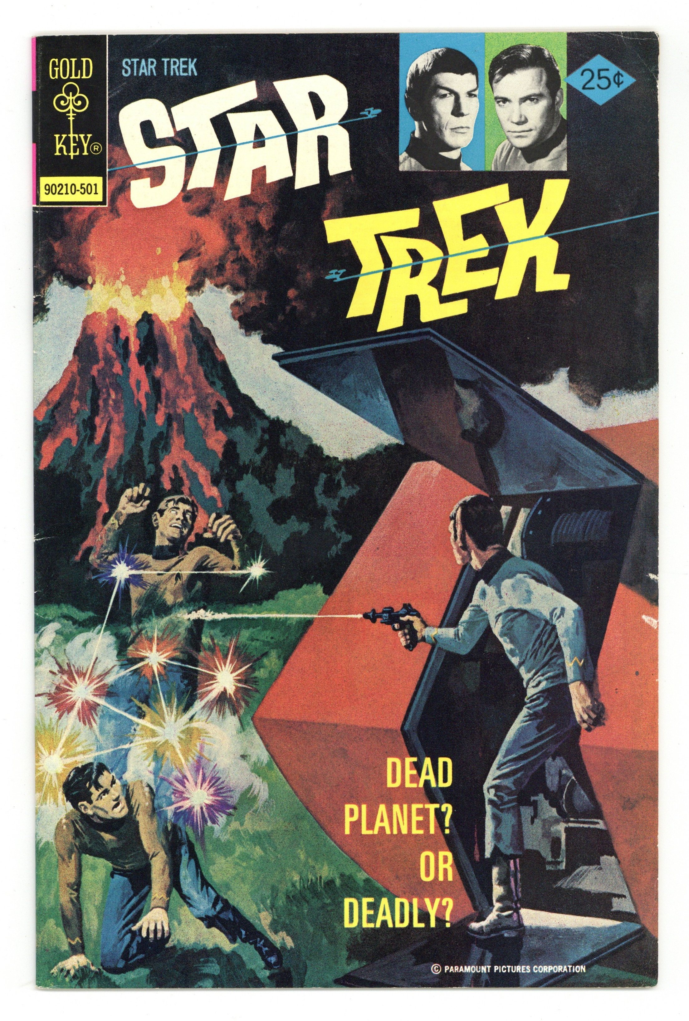 Tags: Star Trek$23.50Number/month on cover: 90210-501, no month listed. Comic book version of the original Star Trek TV series that starred William Shatner and Leonard Nimoy. Issue features "The Mimicking Menace" Parts 1 & 2 in which Kirk and company investigate an asteroid and encounter a dangerous entity that can create duplications. Story and art credits: unknown. Cover price $0.25.
